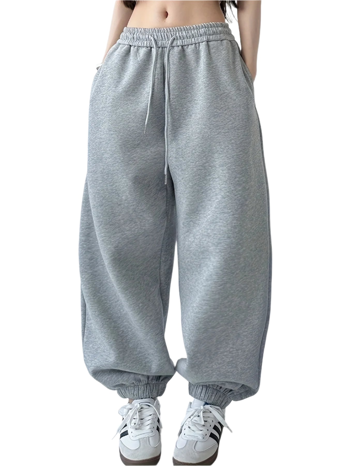 Bequeme, weite graue Jogginghose für Damen (Fitnessstudio/Zuhause)