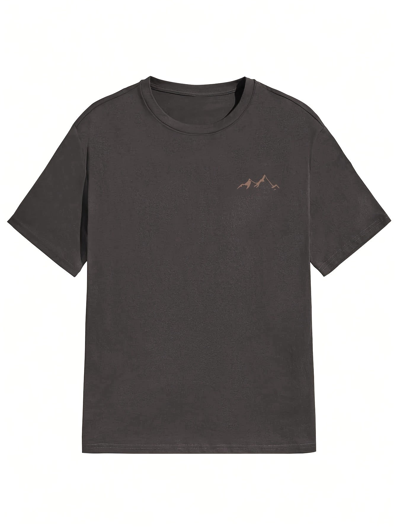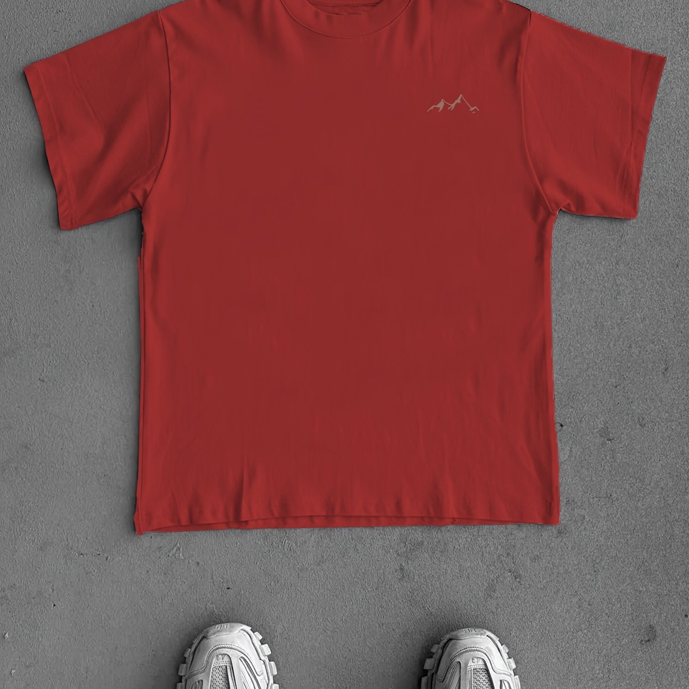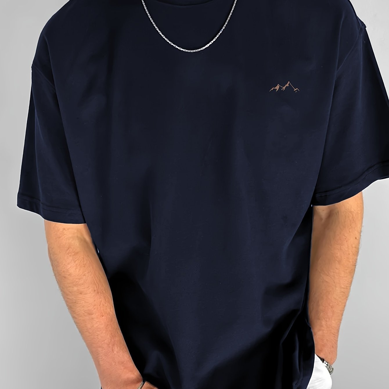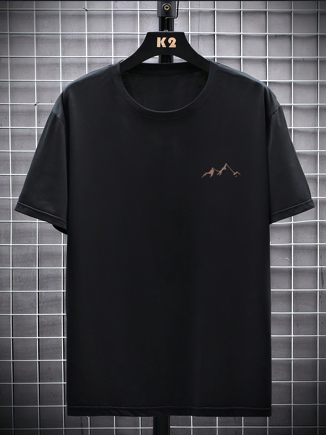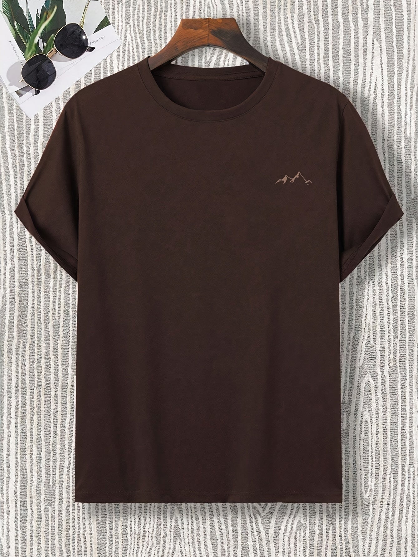 100% Polyester Premium Double-Brushed T-Shirt - Men's Casual Crew Neck, Short Sleeve - Machine Washable, Ideal for Summer with Mountain Embroidery