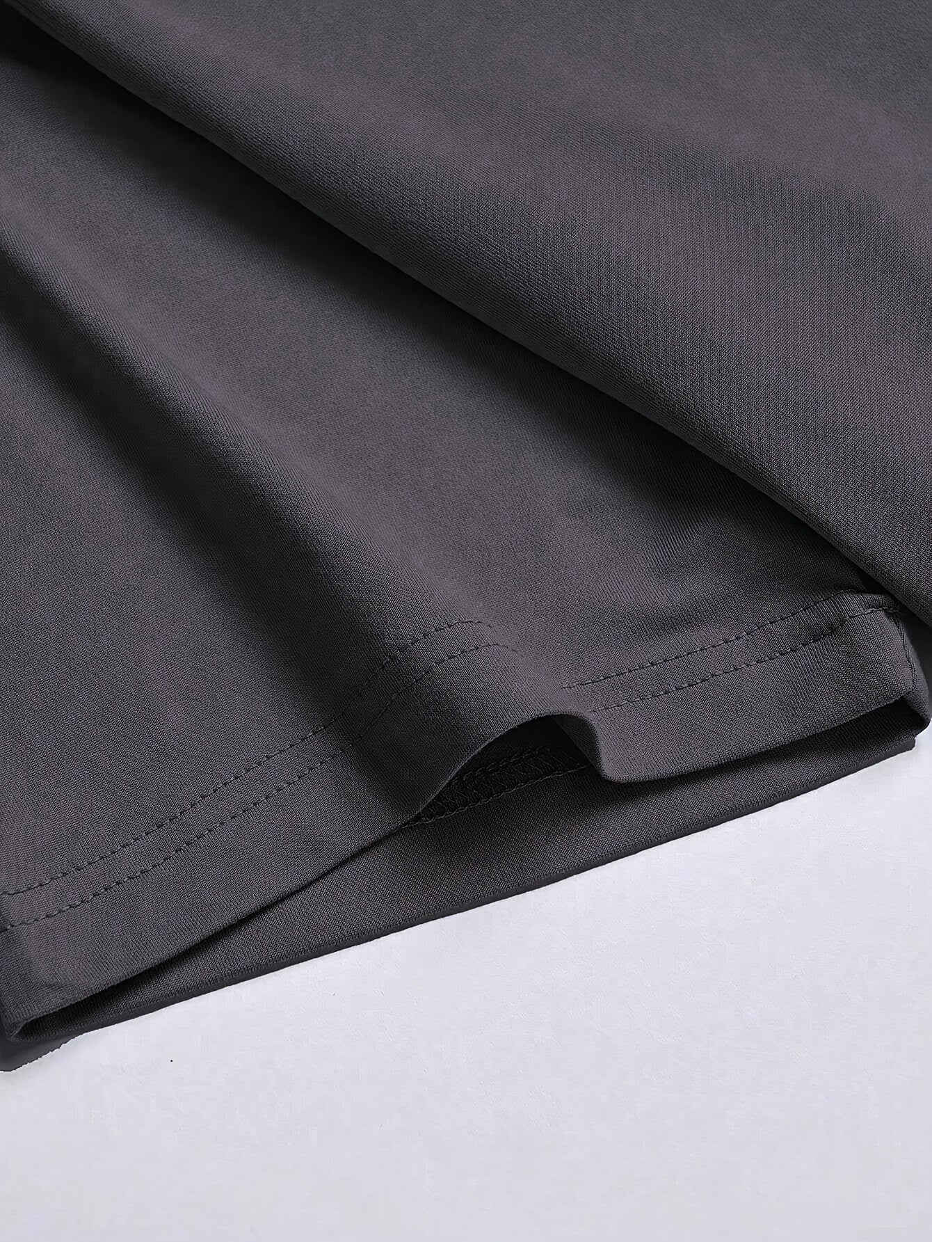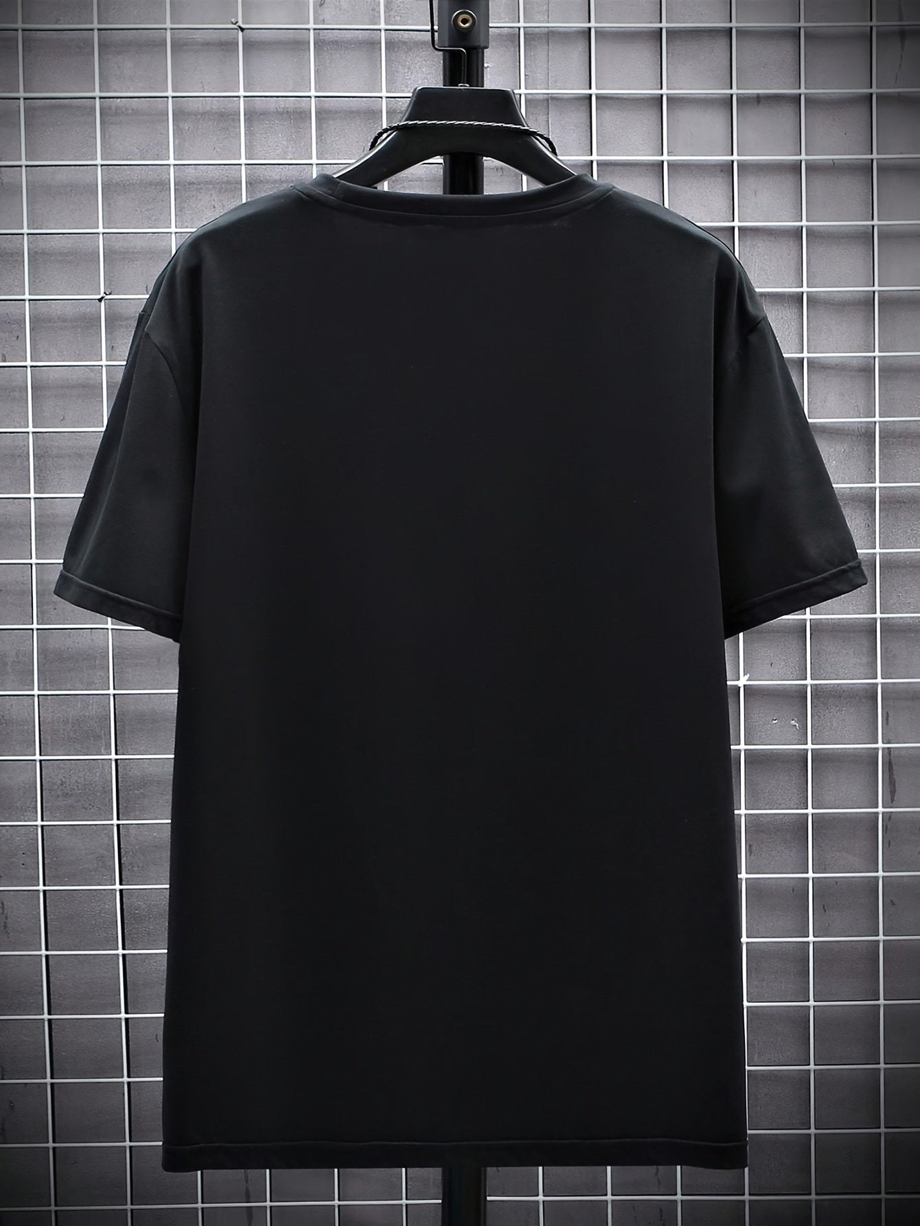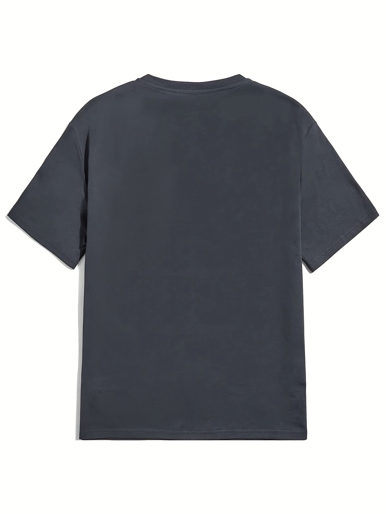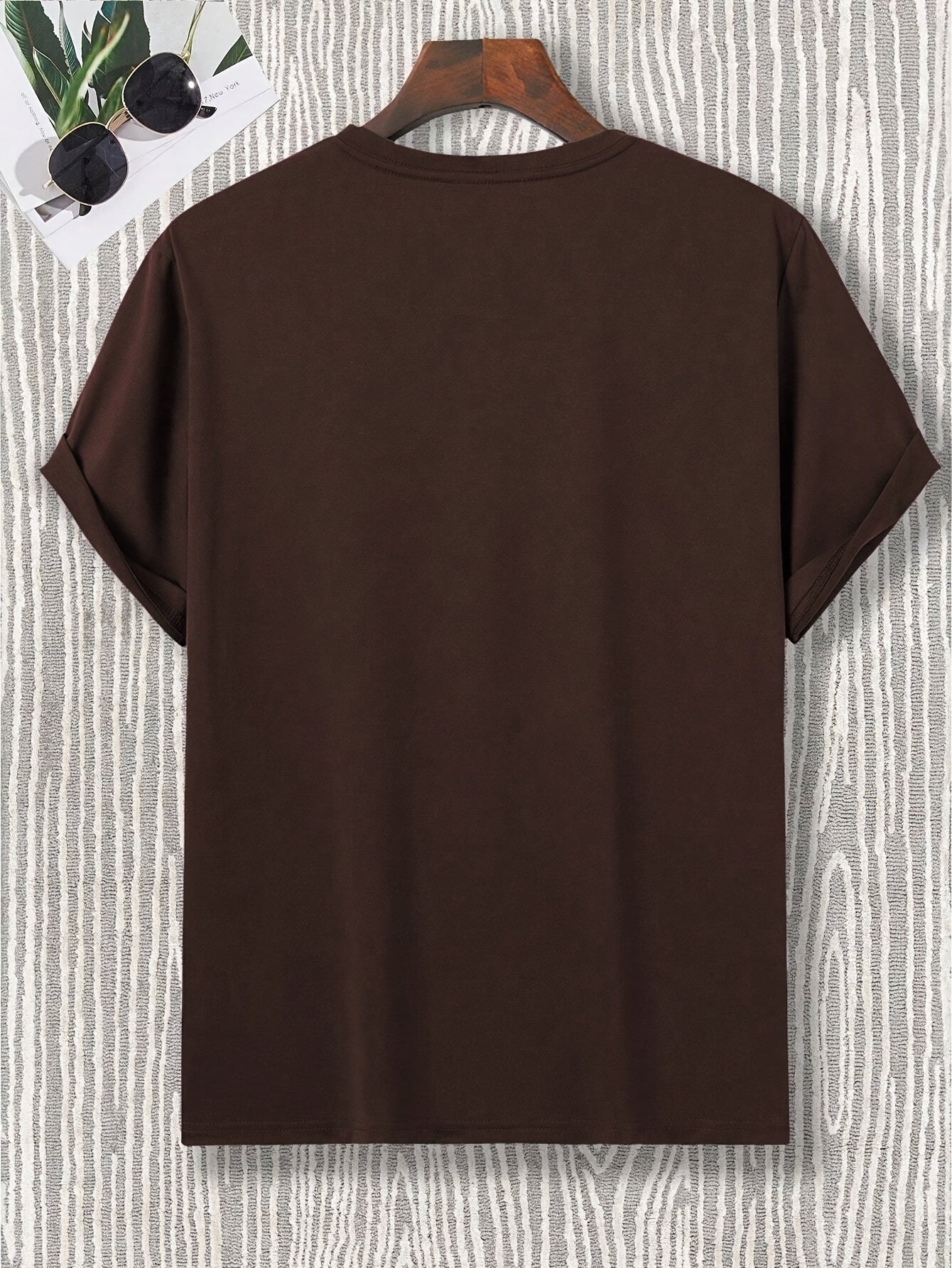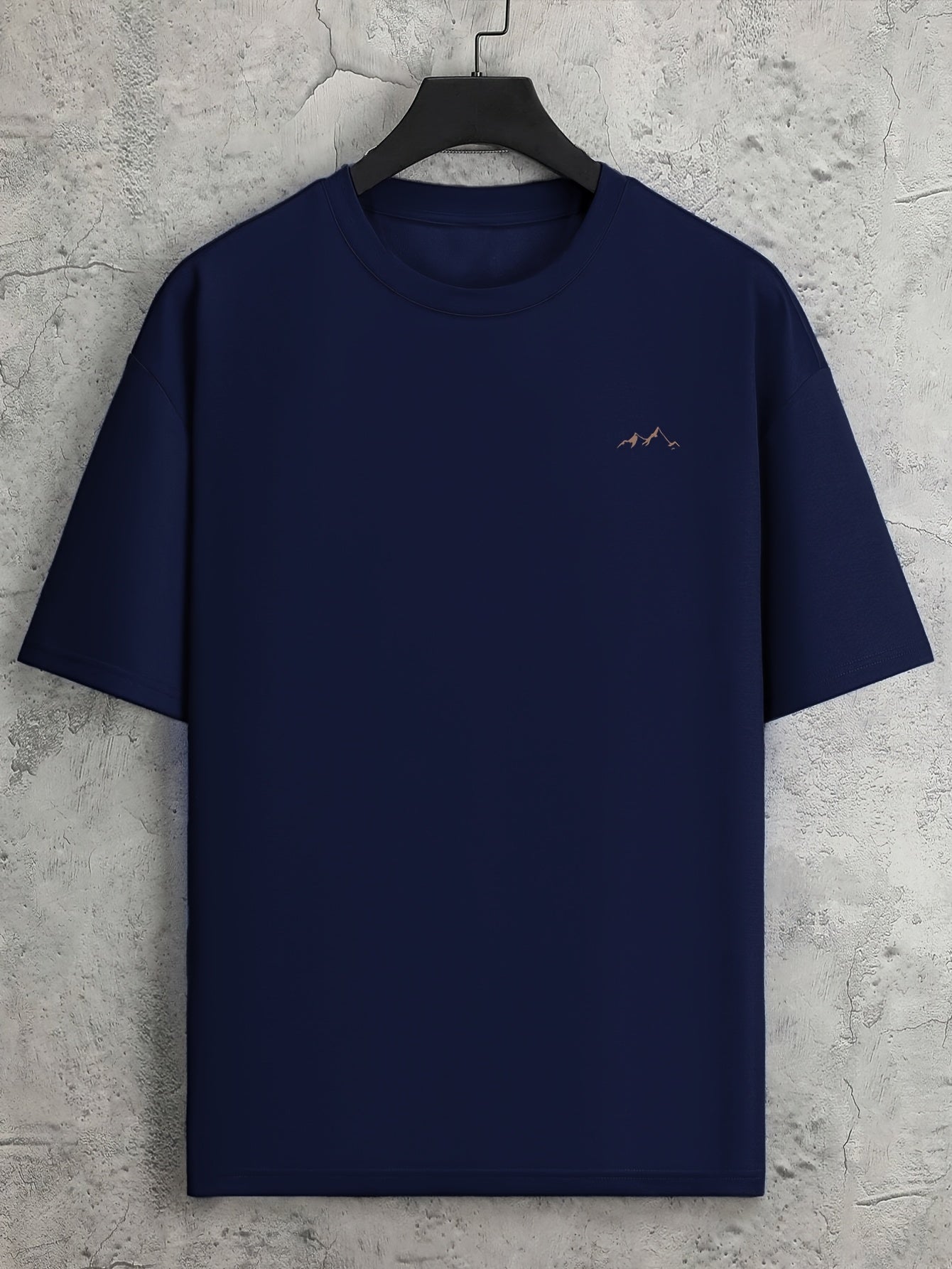 100% Polyester Premium Double-Brushed T-Shirt - Men's Casual Crew Neck, Short Sleeve - Machine Washable, Ideal for Summer with Mountain Embroidery