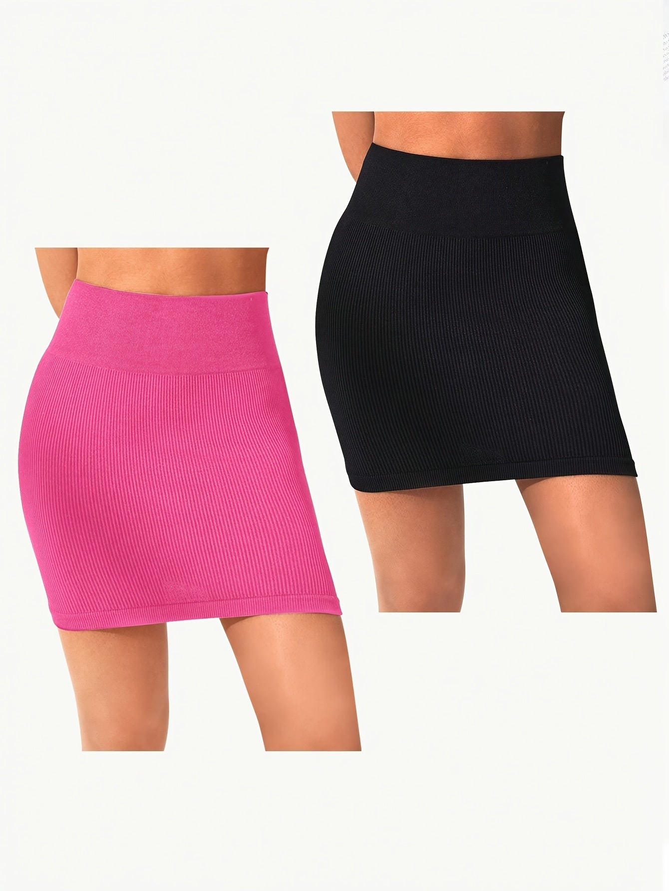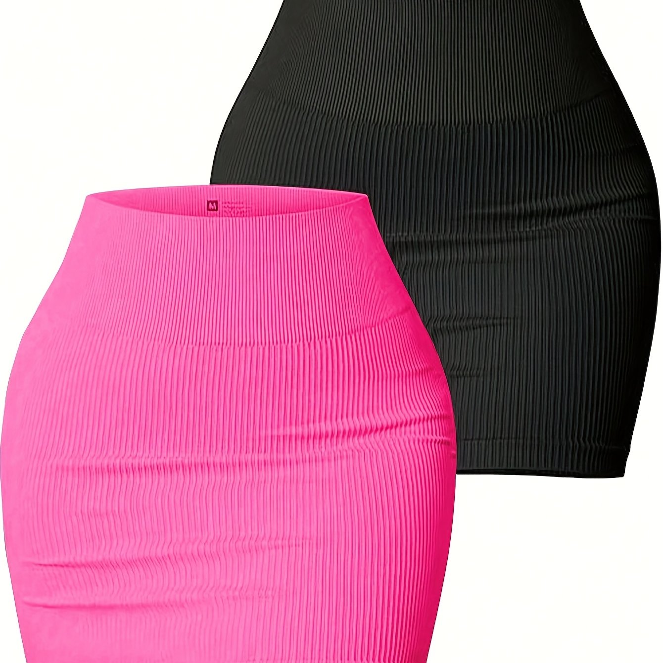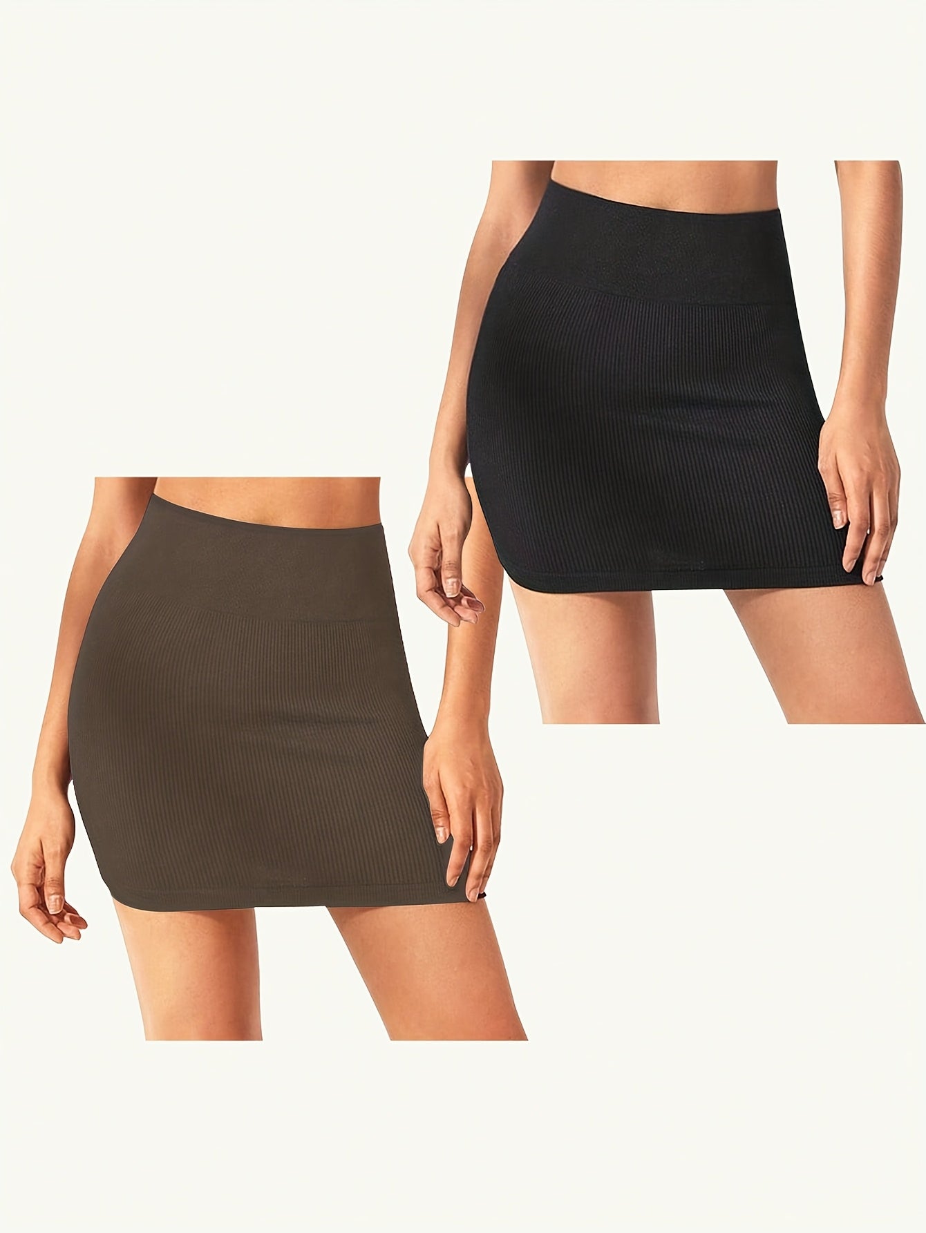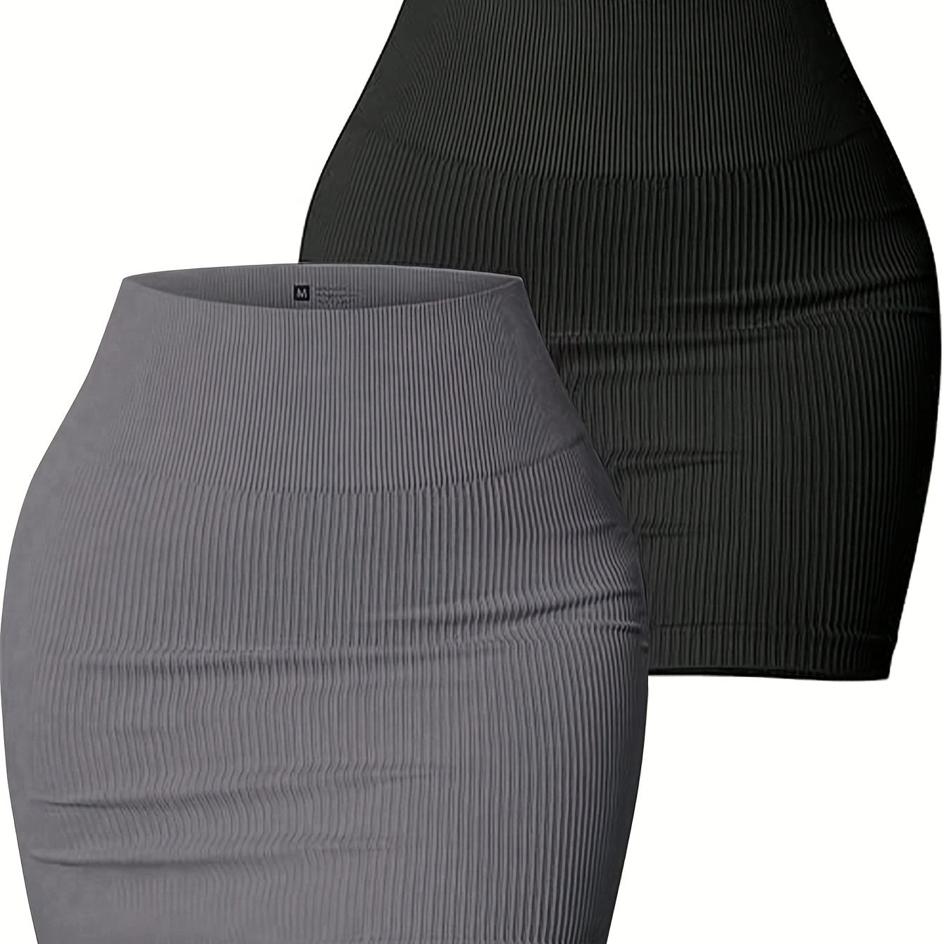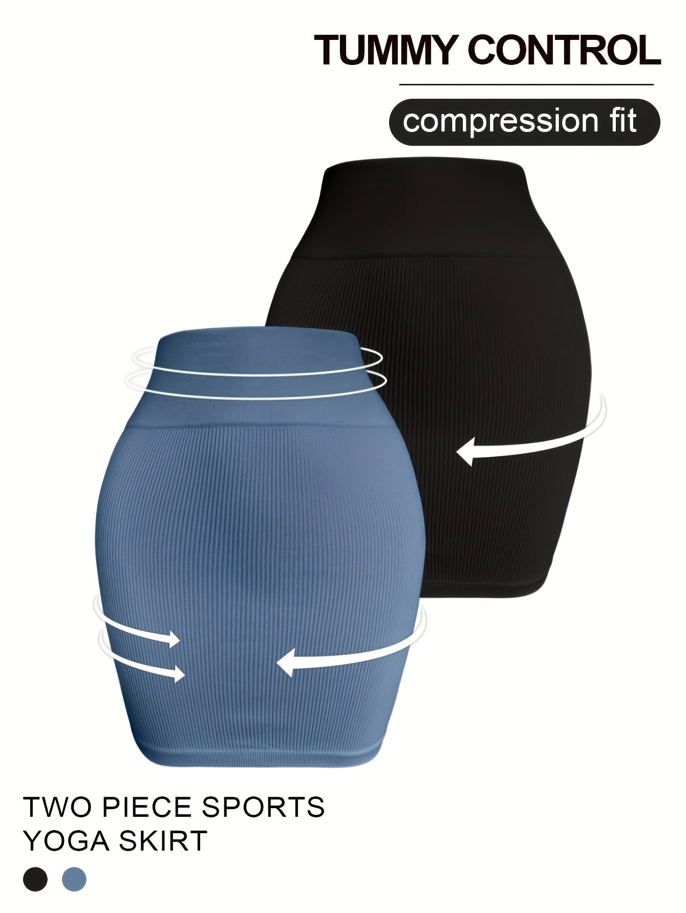 A Set of Two Women'S Ribbed High-Elastic Seamless High-Waisted Versatile Bodycon Sports Skirts, Suitable for Yoga, Running, Fitness, Casual Wear, Street Style, And Studio Use.