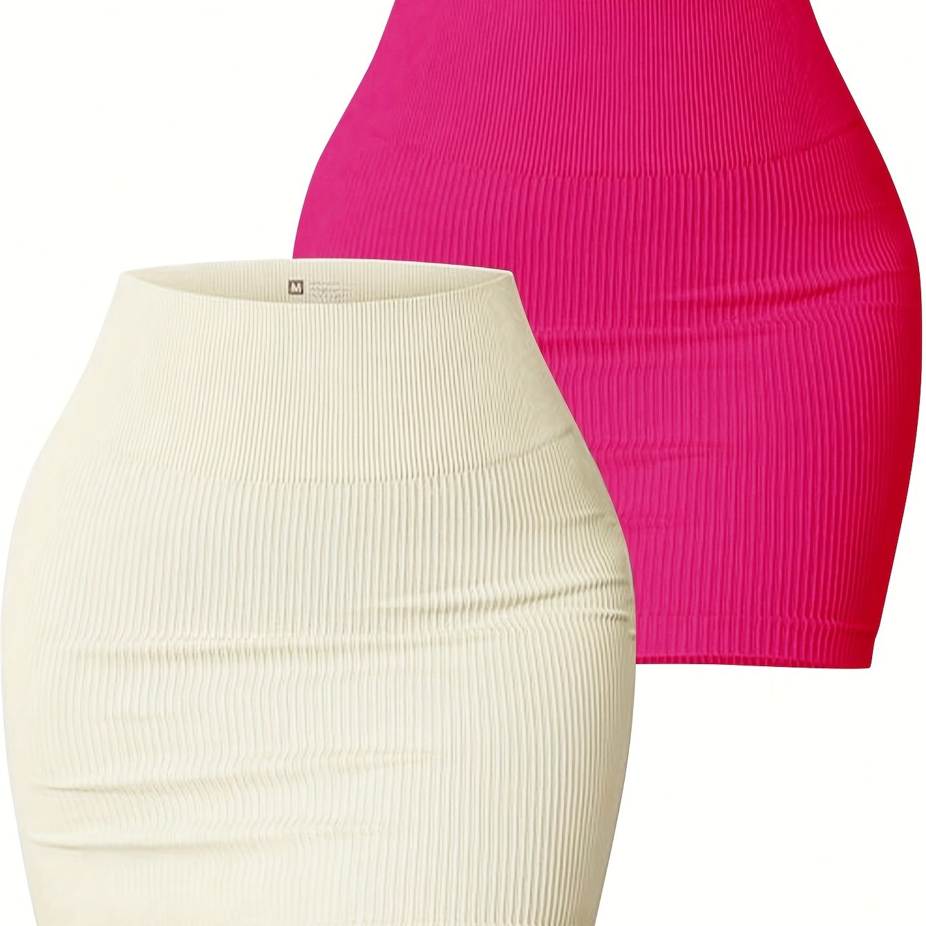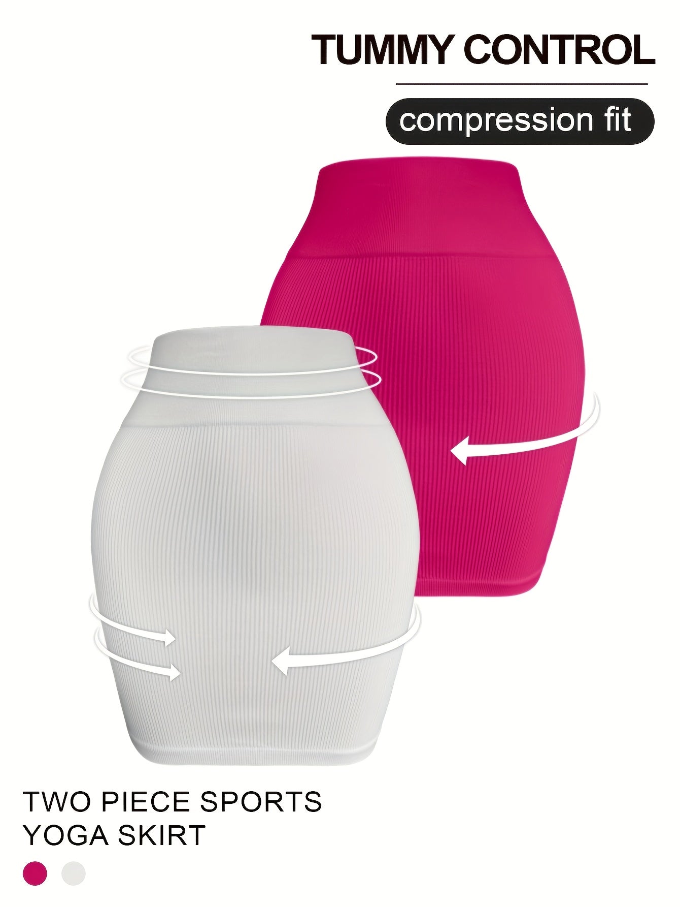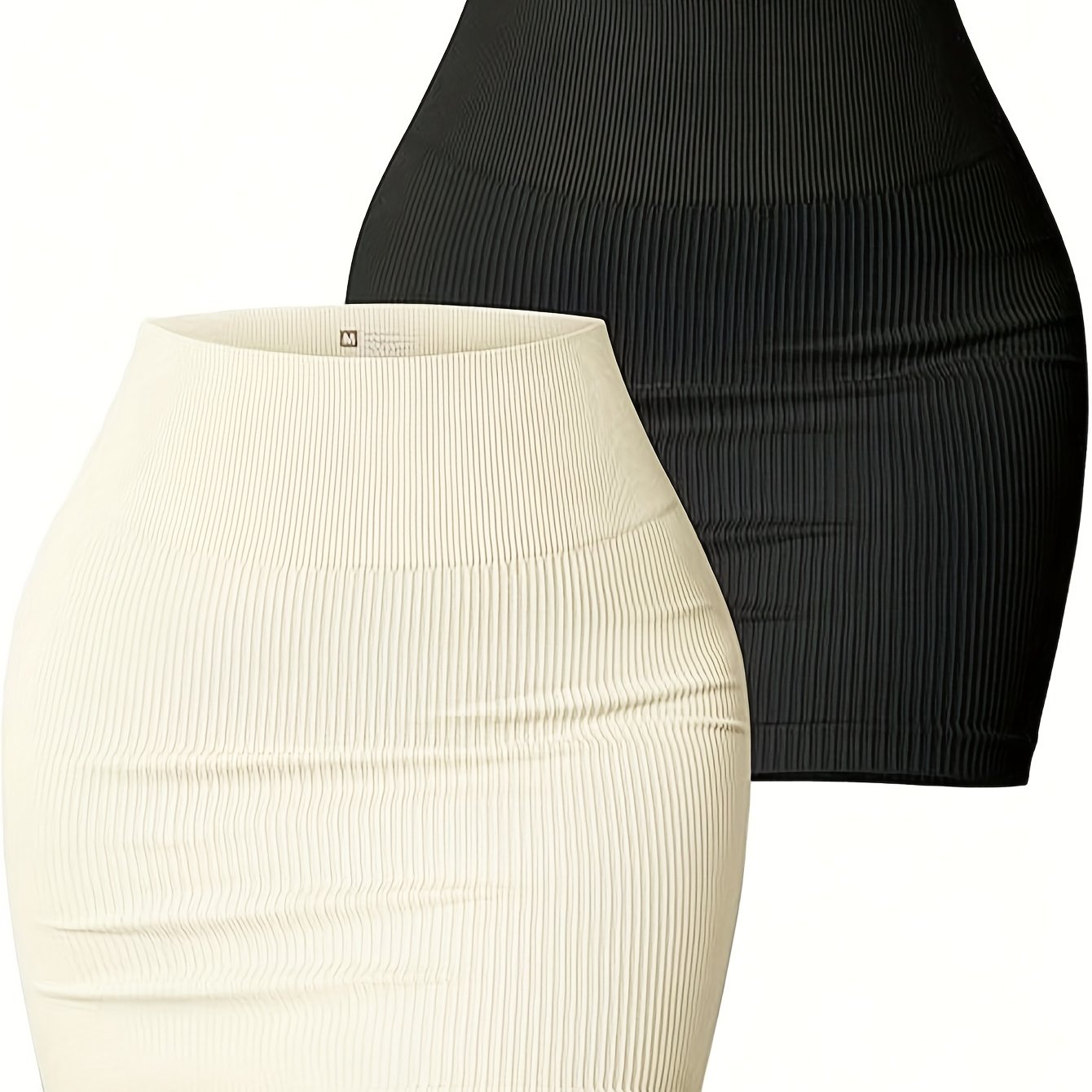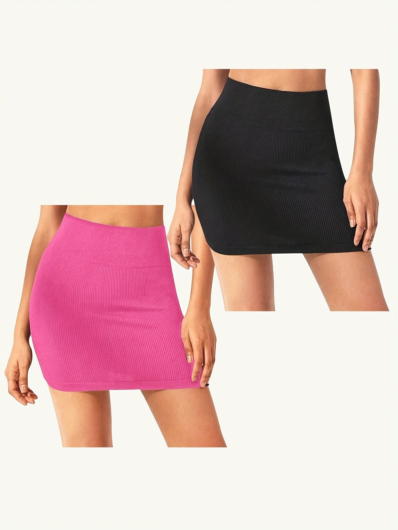 A Set of Two Women'S Ribbed High-Elastic Seamless High-Waisted Versatile Bodycon Sports Skirts, Suitable for Yoga, Running, Fitness, Casual Wear, Street Style, And Studio Use.