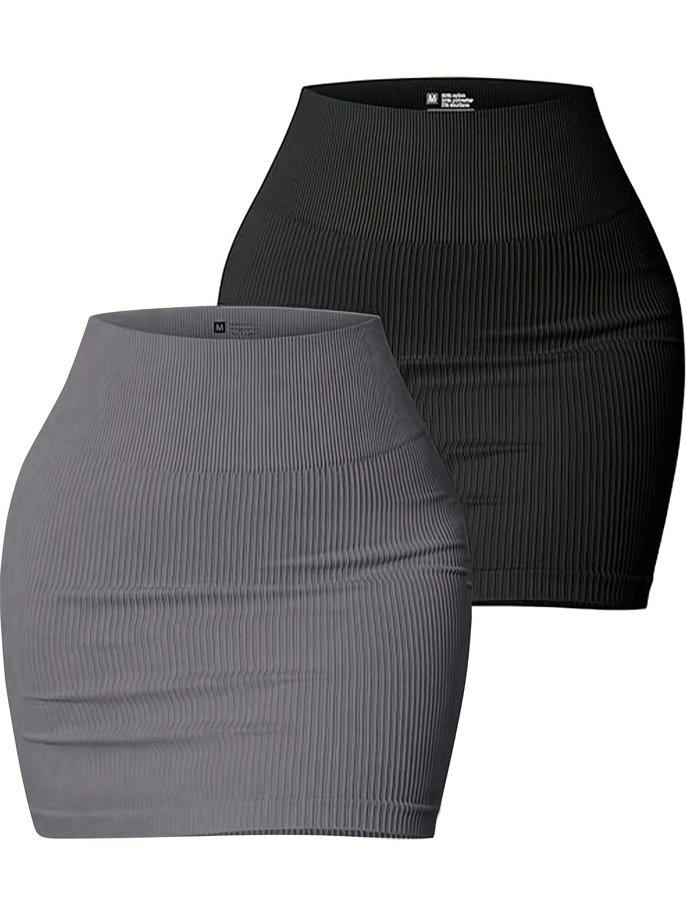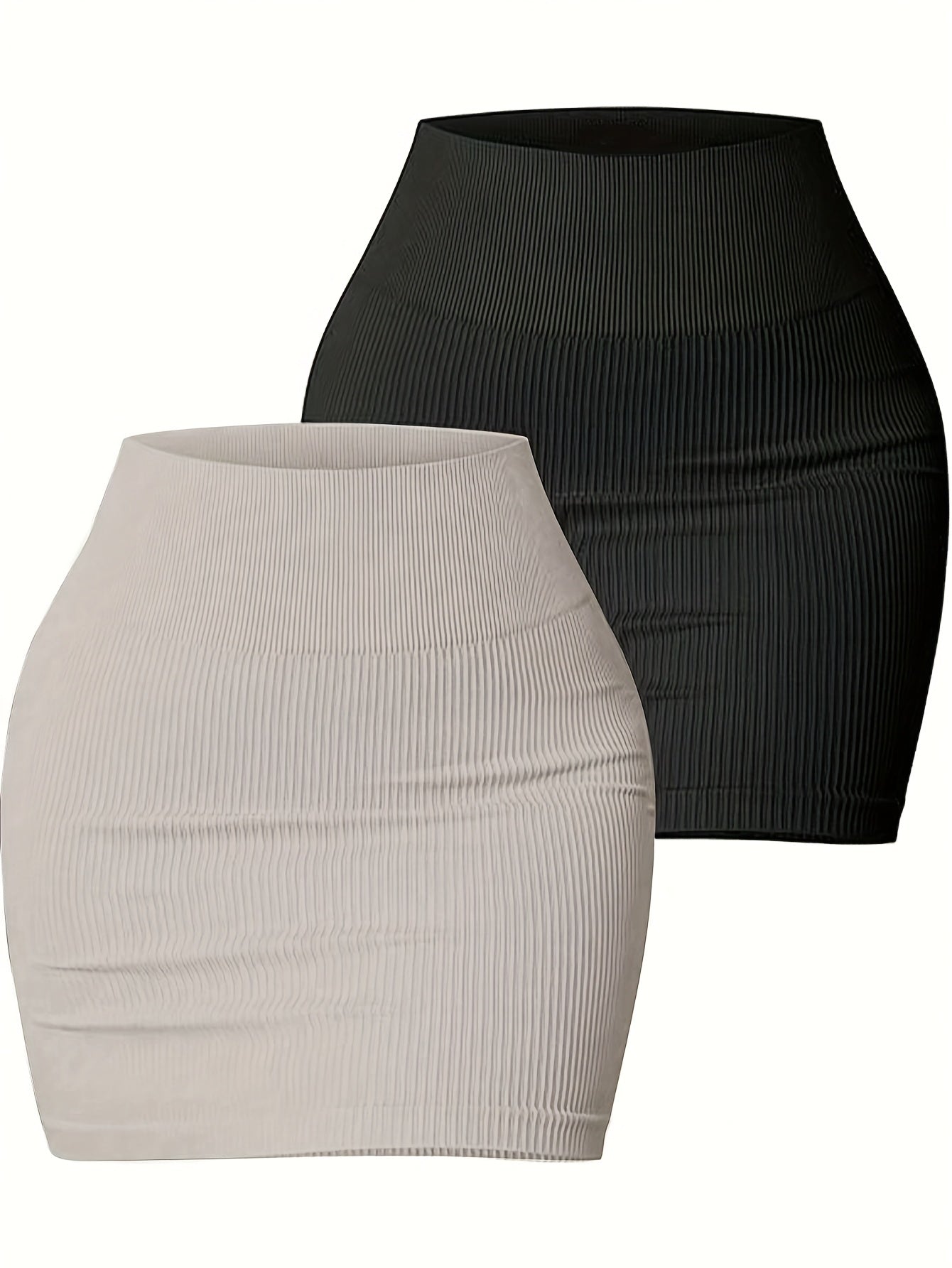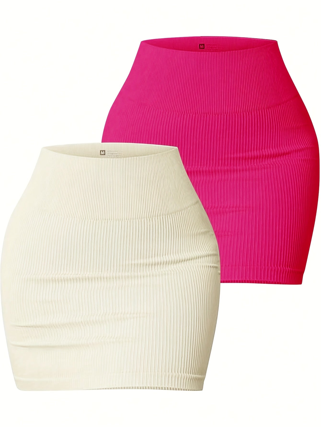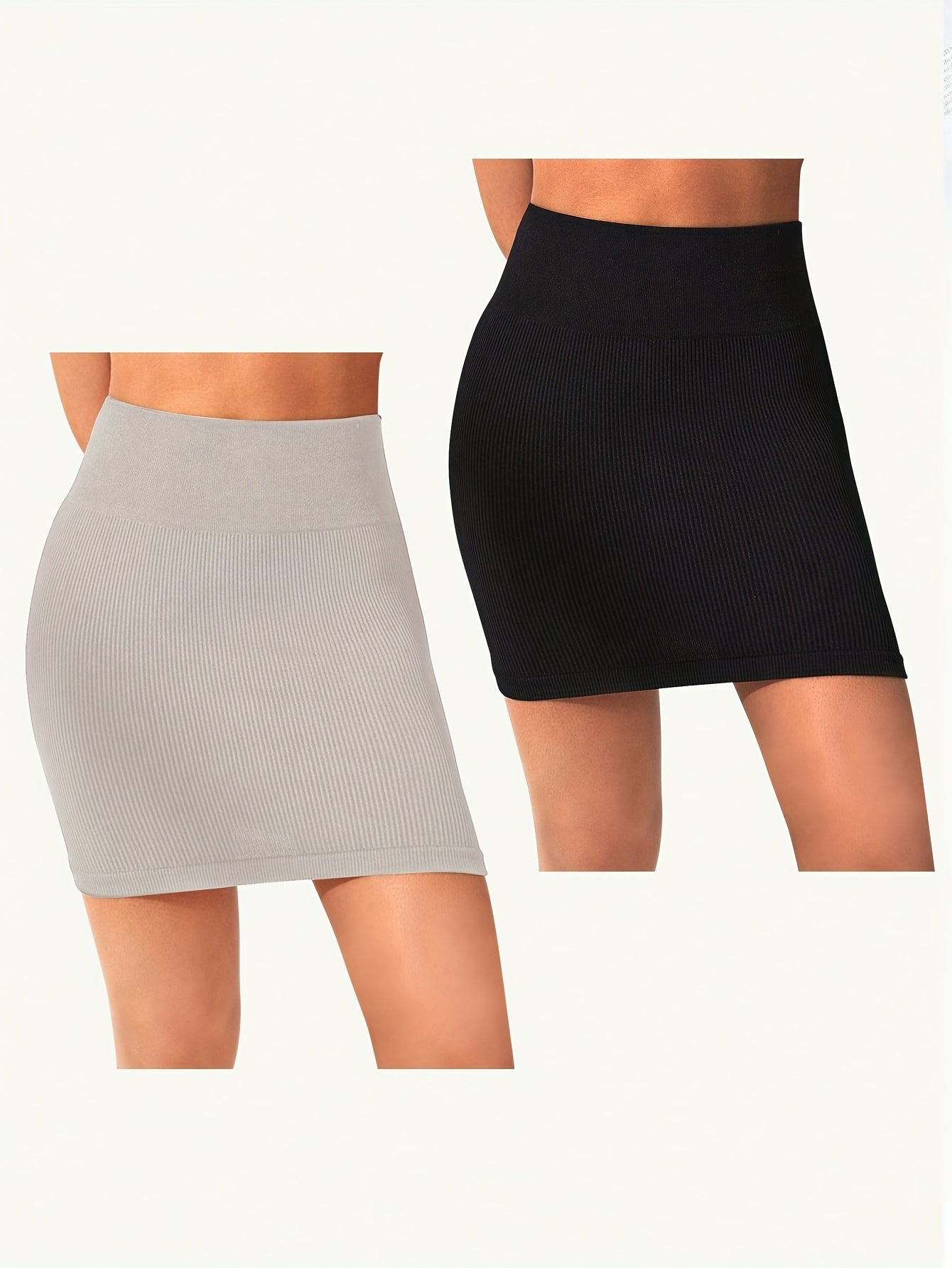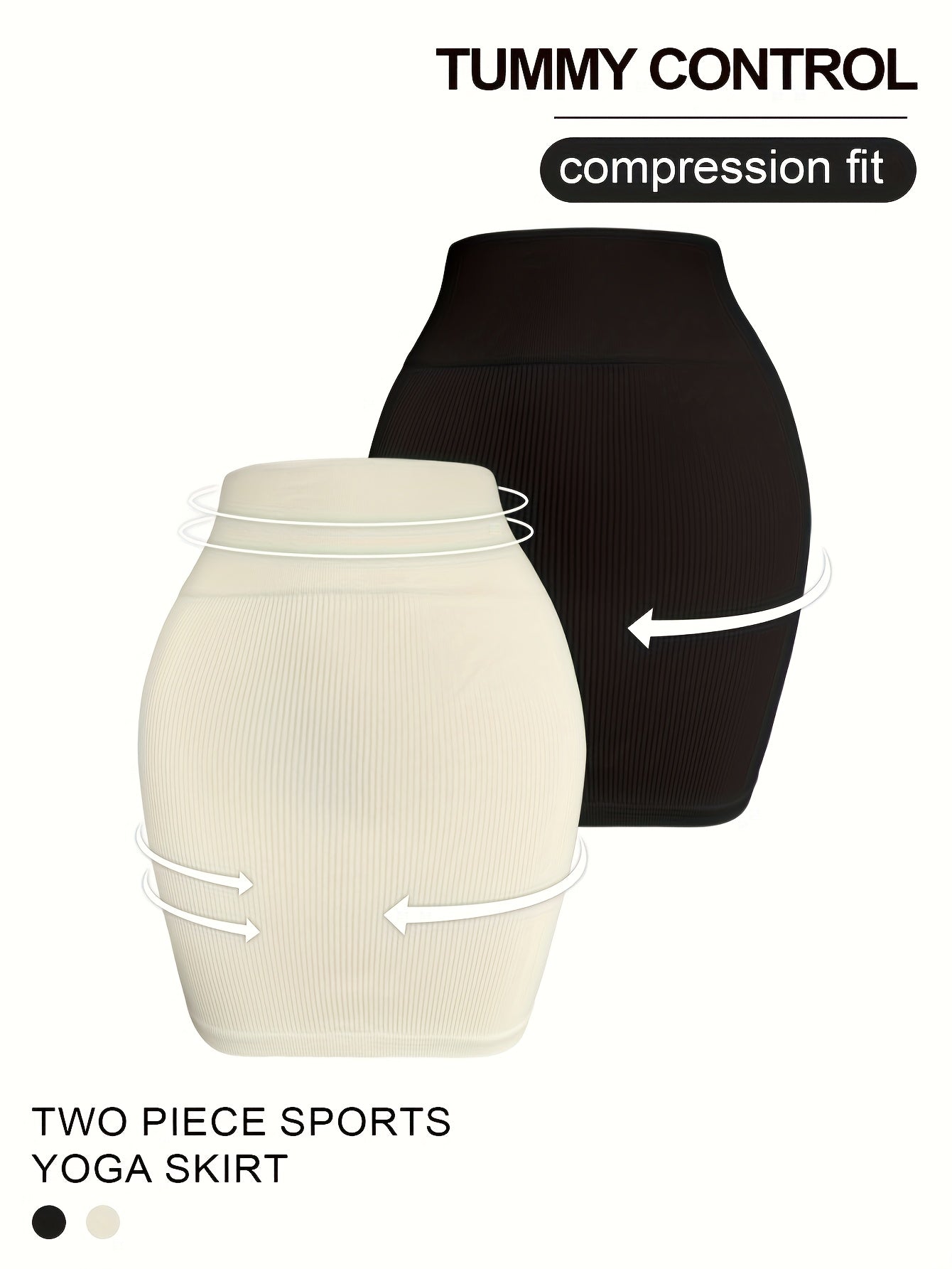 A Set of Two Women'S Ribbed High-Elastic Seamless High-Waisted Versatile Bodycon Sports Skirts, Suitable for Yoga, Running, Fitness, Casual Wear, Street Style, And Studio Use.