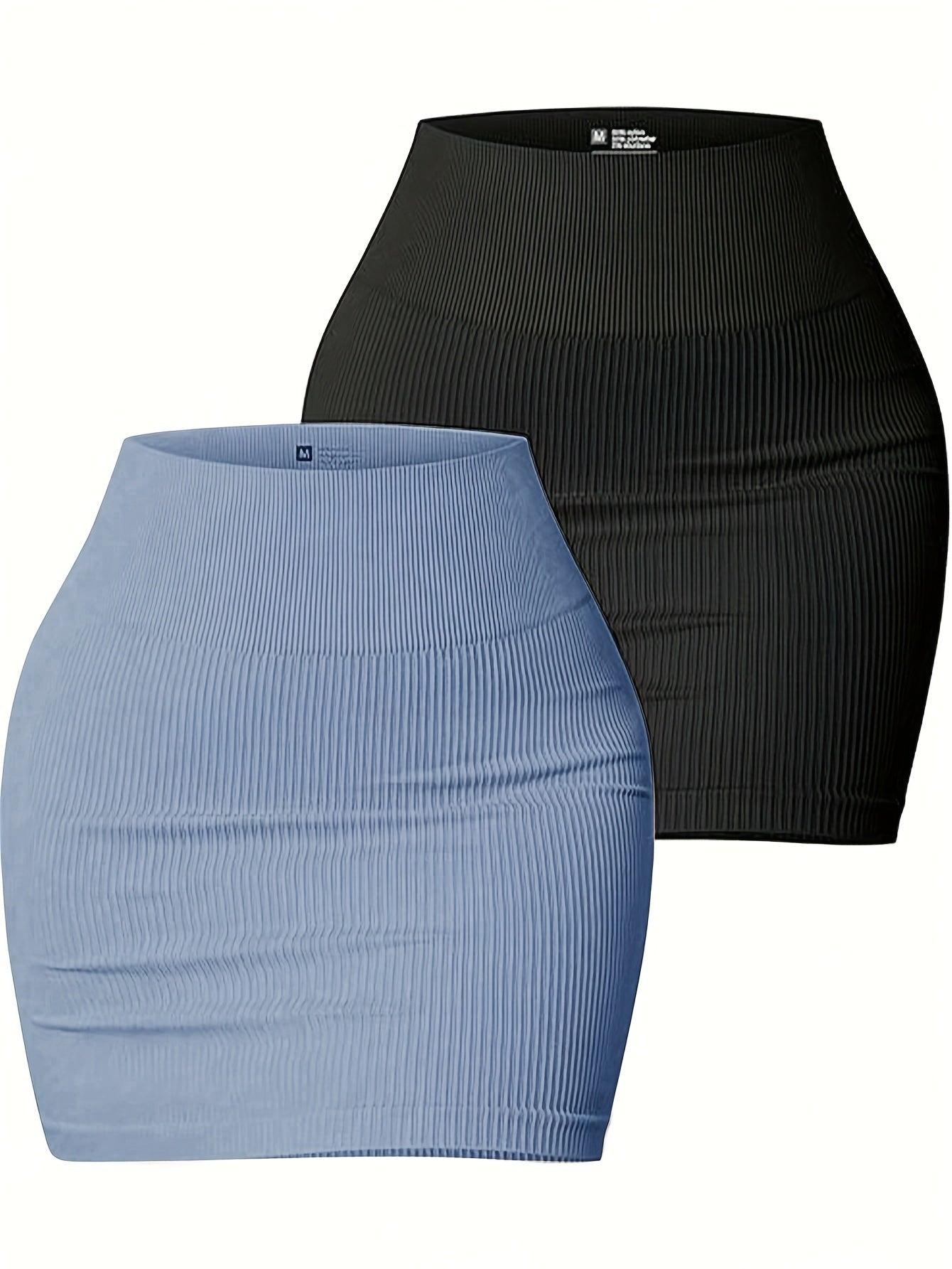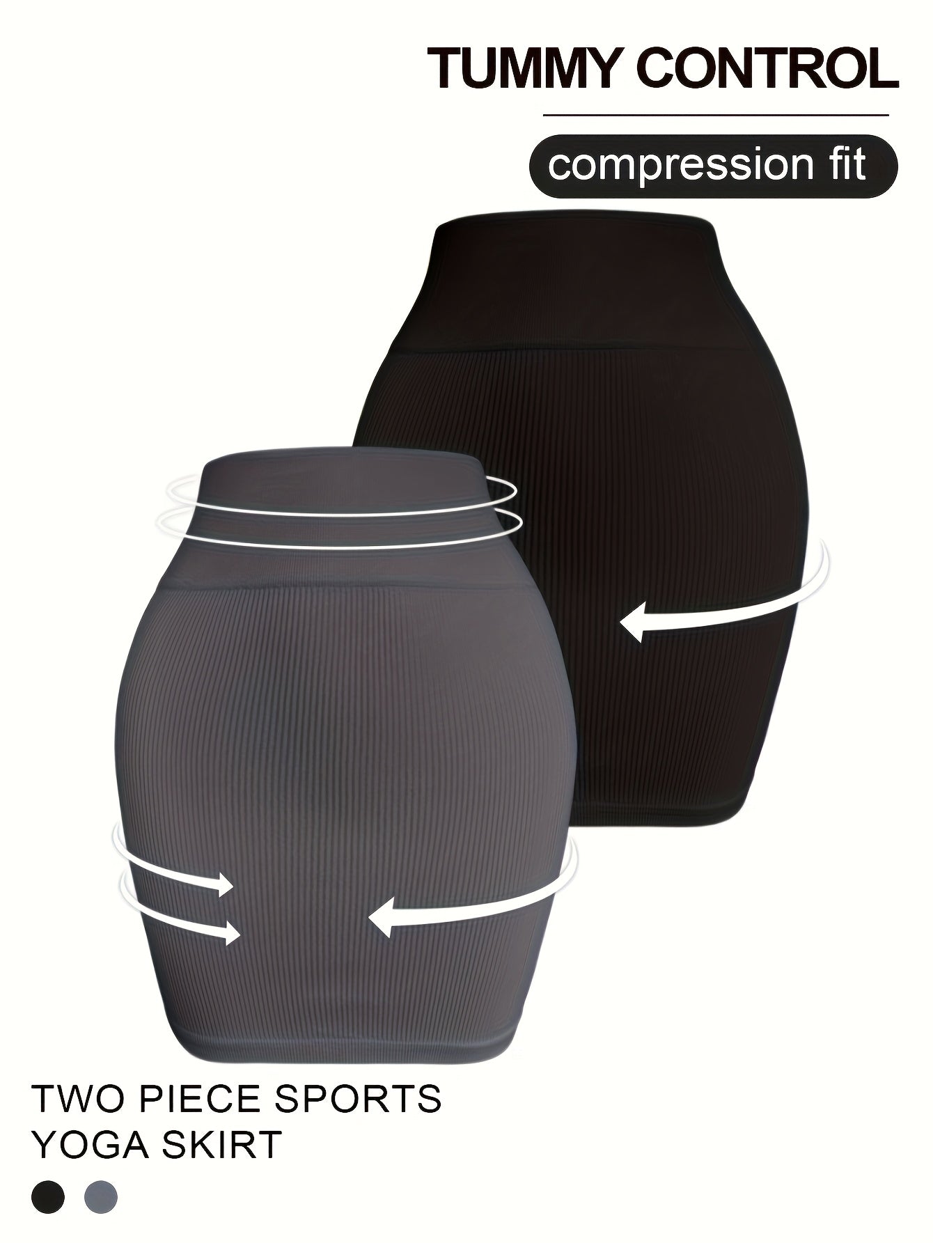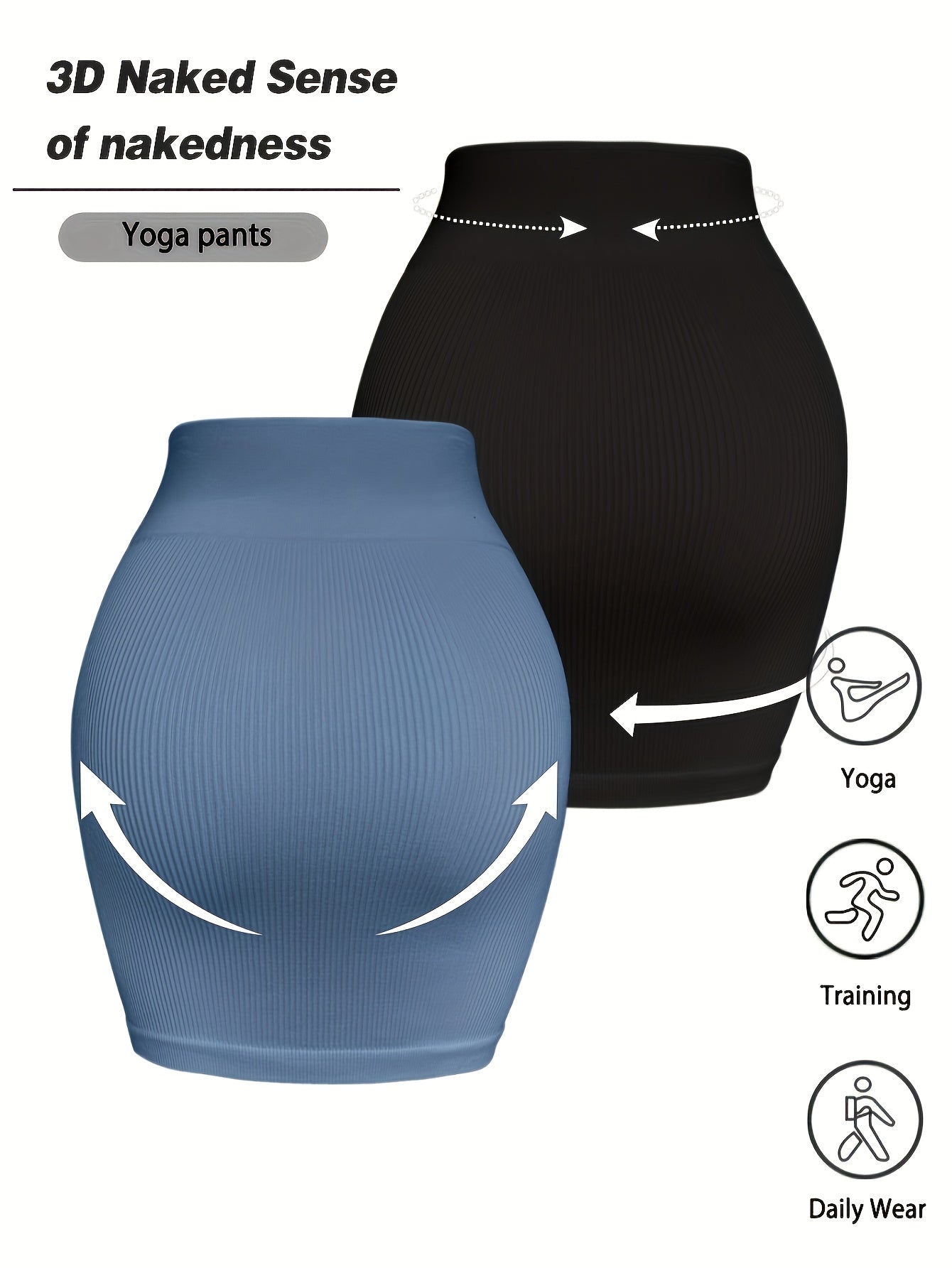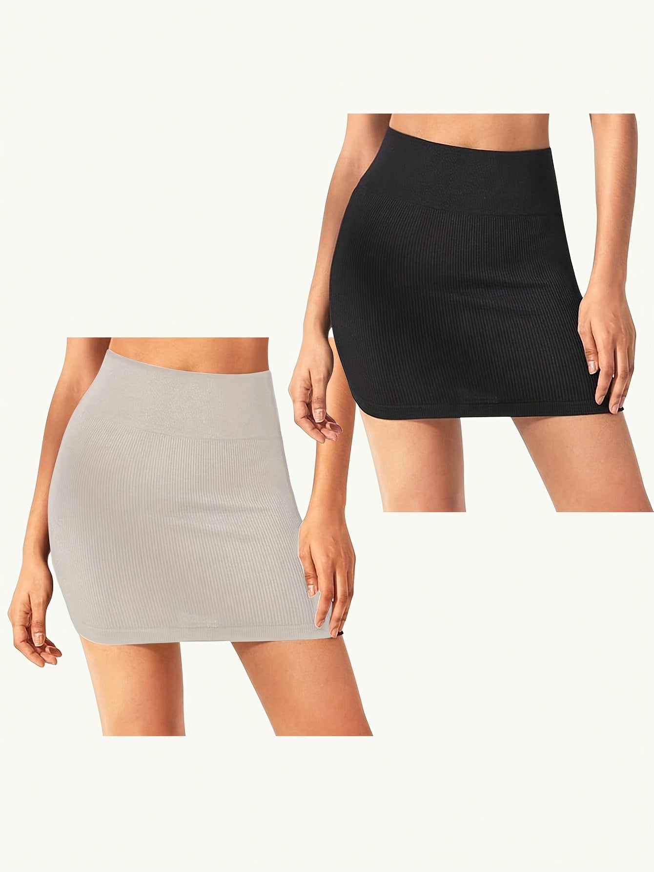 A Set of Two Women'S Ribbed High-Elastic Seamless High-Waisted Versatile Bodycon Sports Skirts, Suitable for Yoga, Running, Fitness, Casual Wear, Street Style, And Studio Use.