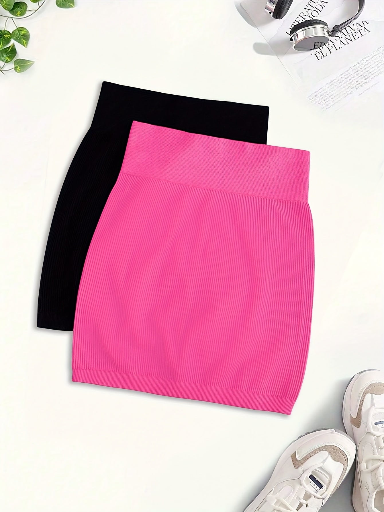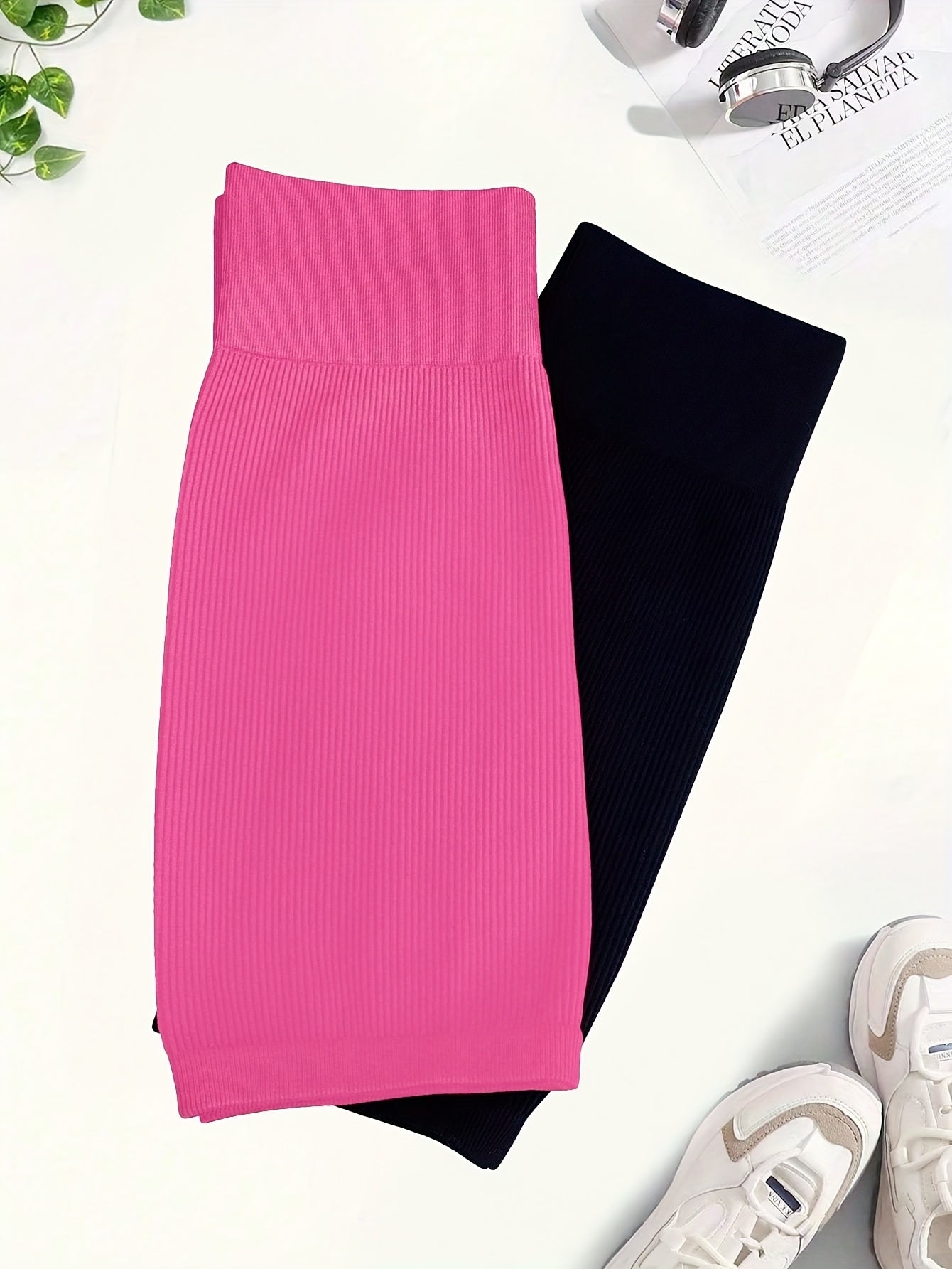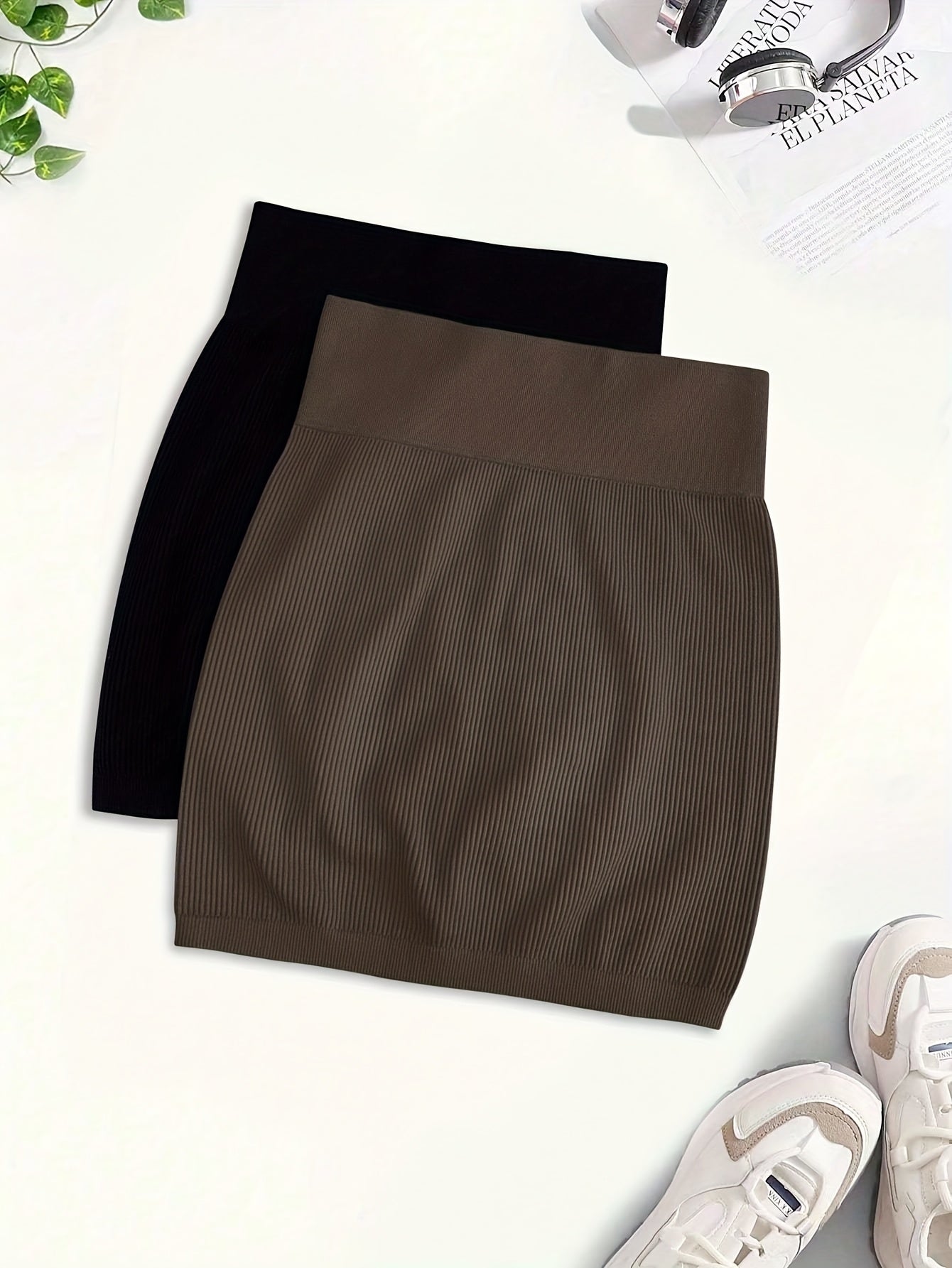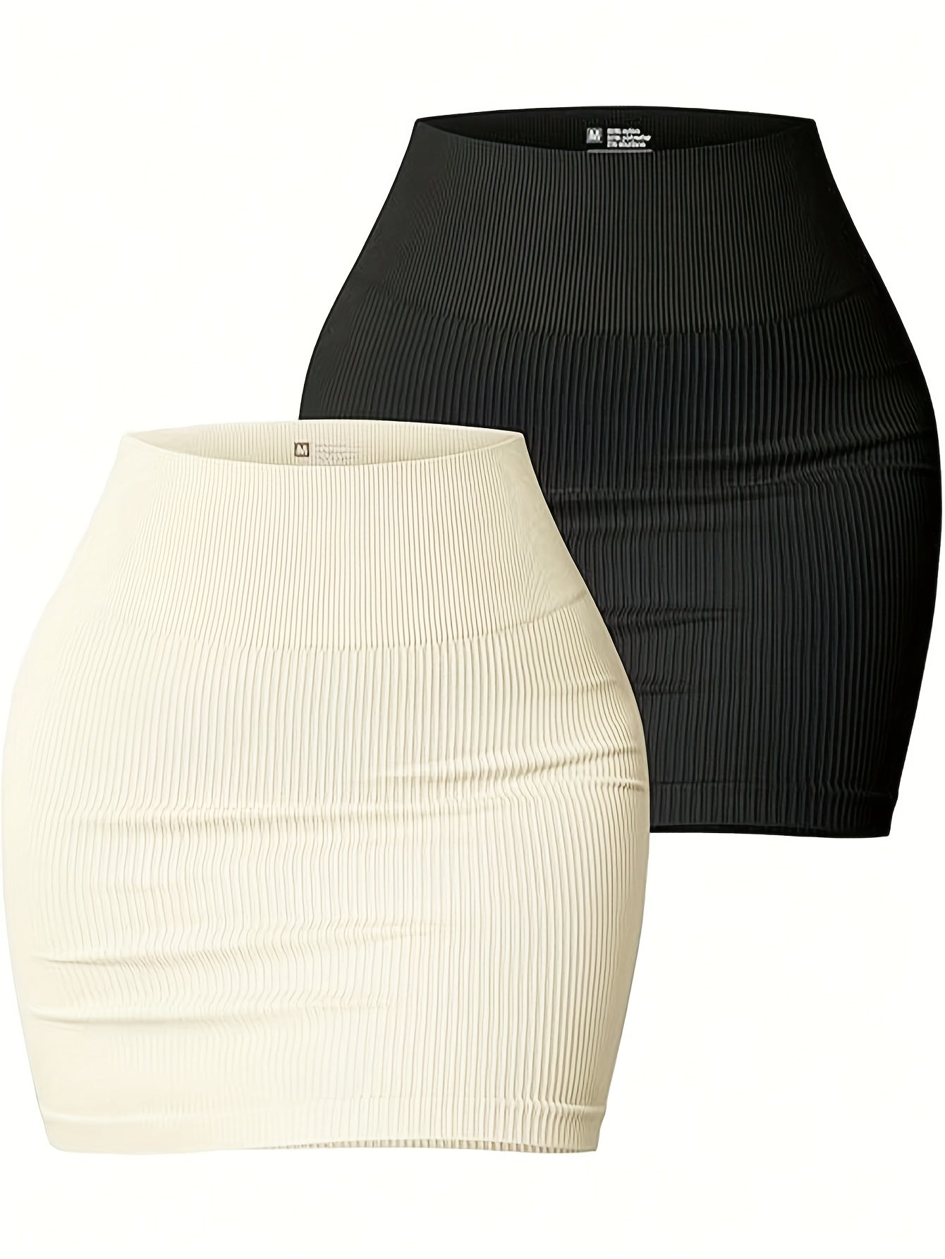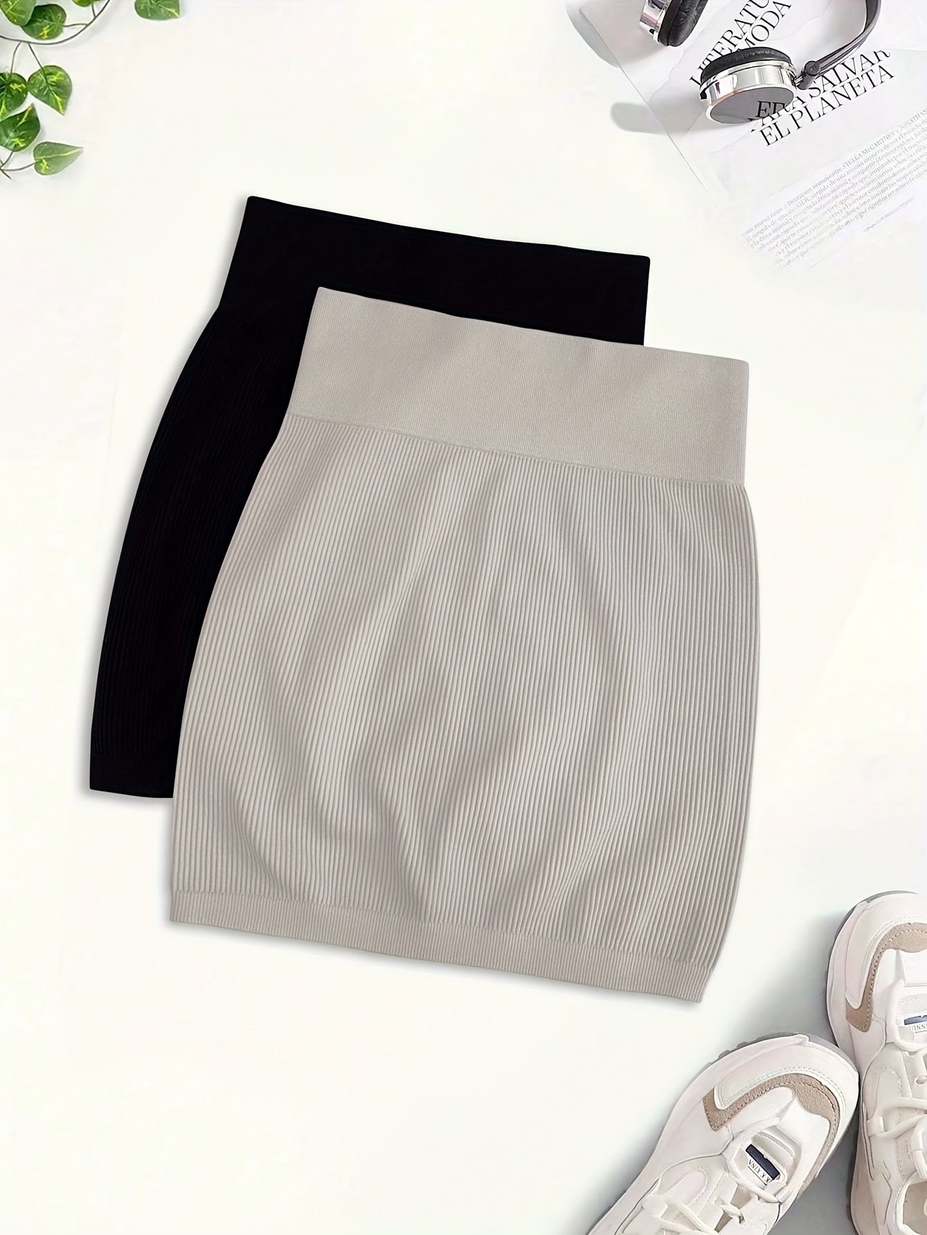 A Set of Two Women'S Ribbed High-Elastic Seamless High-Waisted Versatile Bodycon Sports Skirts, Suitable for Yoga, Running, Fitness, Casual Wear, Street Style, And Studio Use.