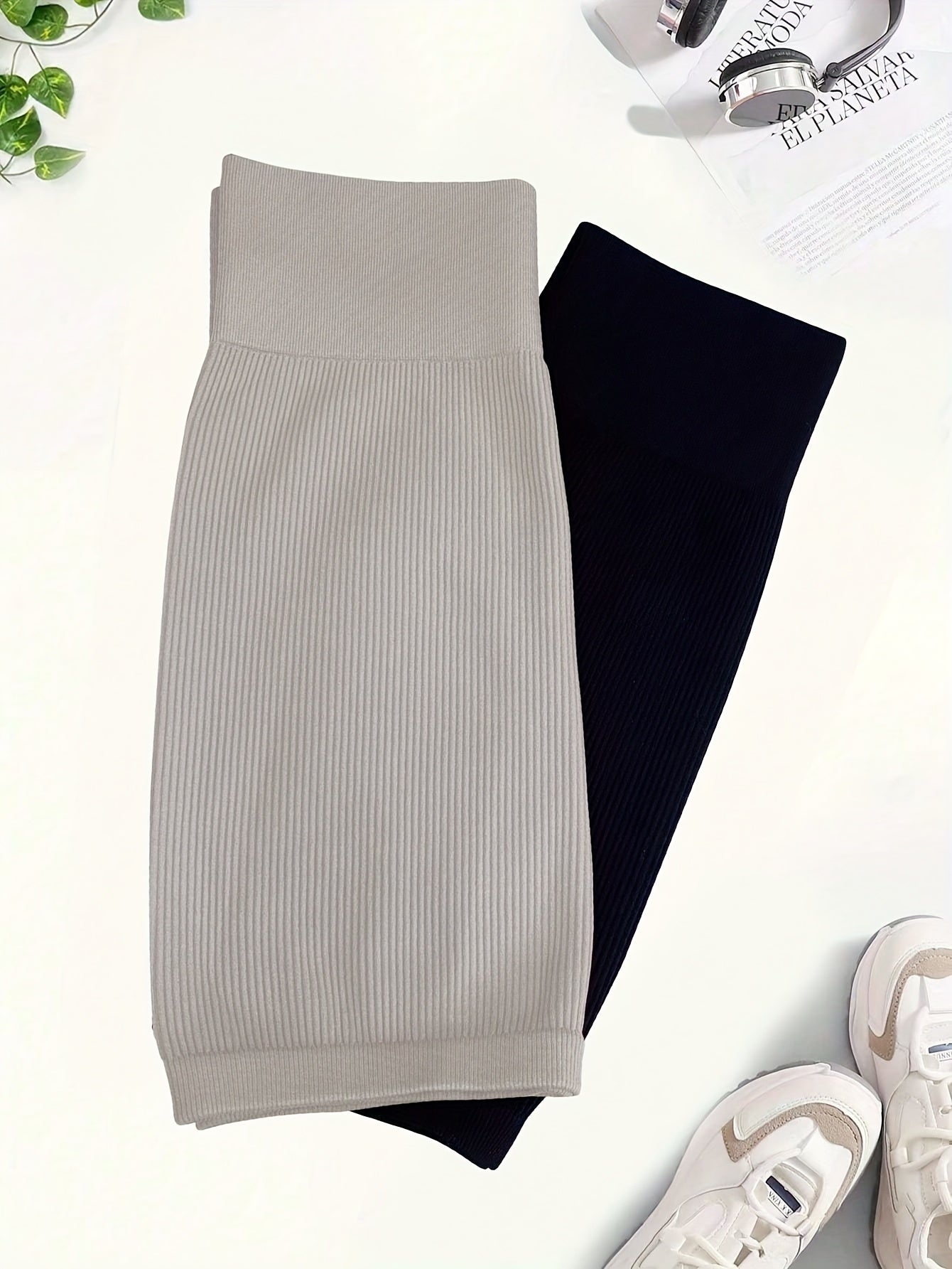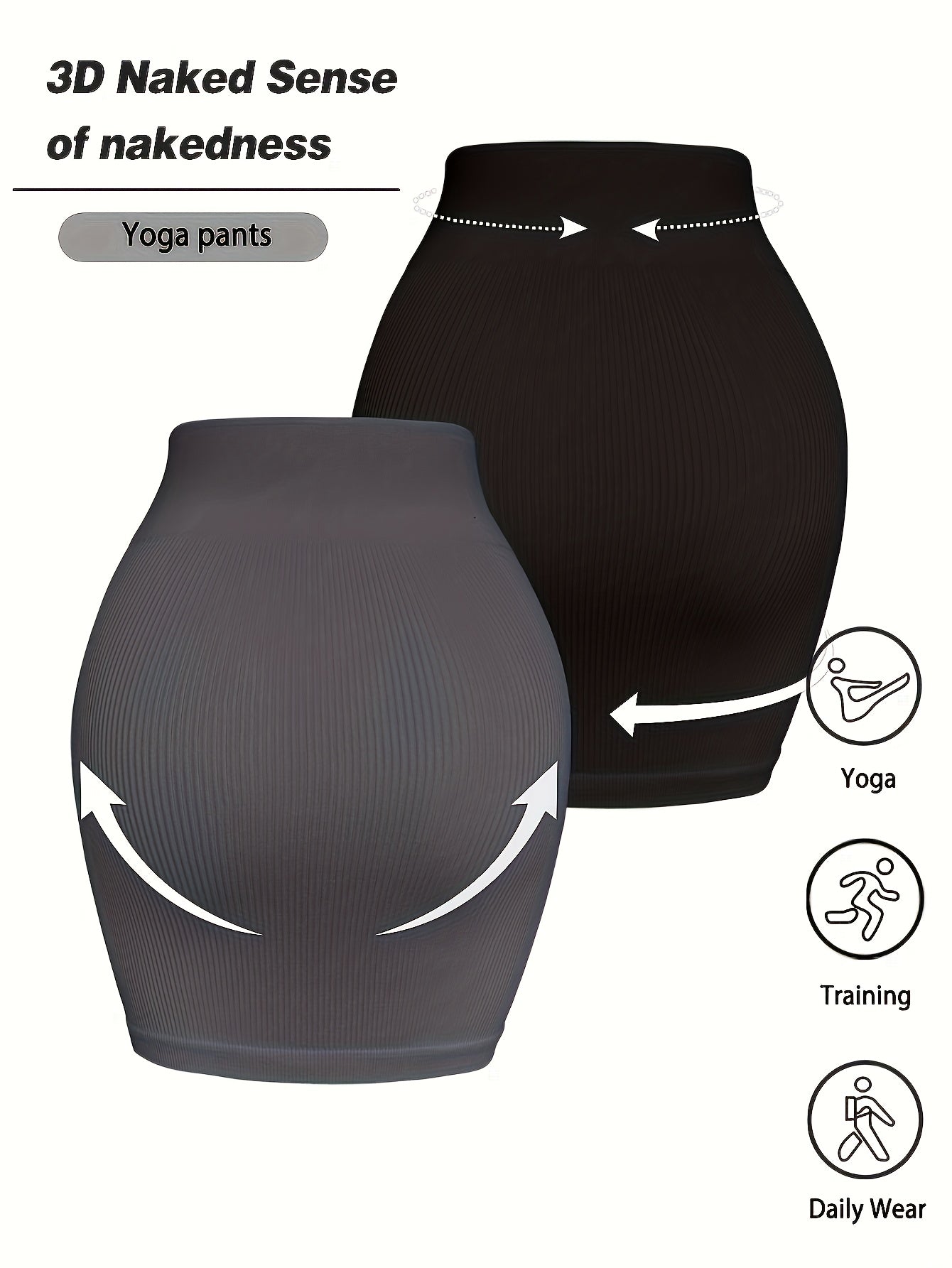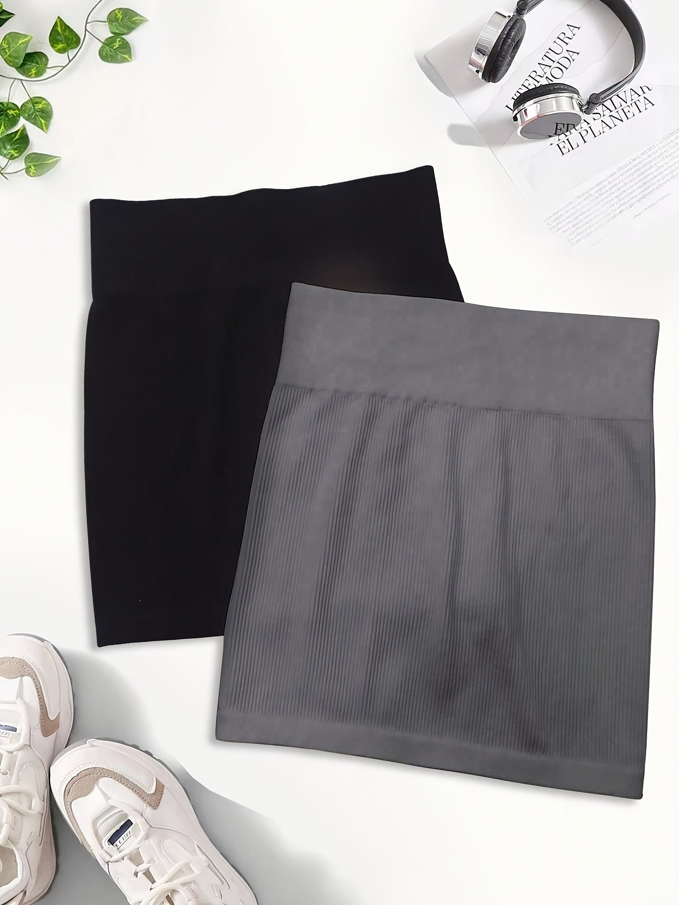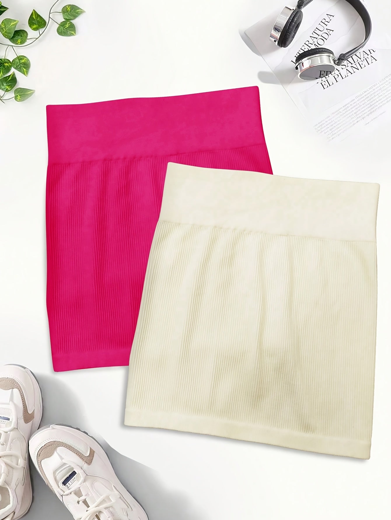 A Set of Two Women'S Ribbed High-Elastic Seamless High-Waisted Versatile Bodycon Sports Skirts, Suitable for Yoga, Running, Fitness, Casual Wear, Street Style, And Studio Use.