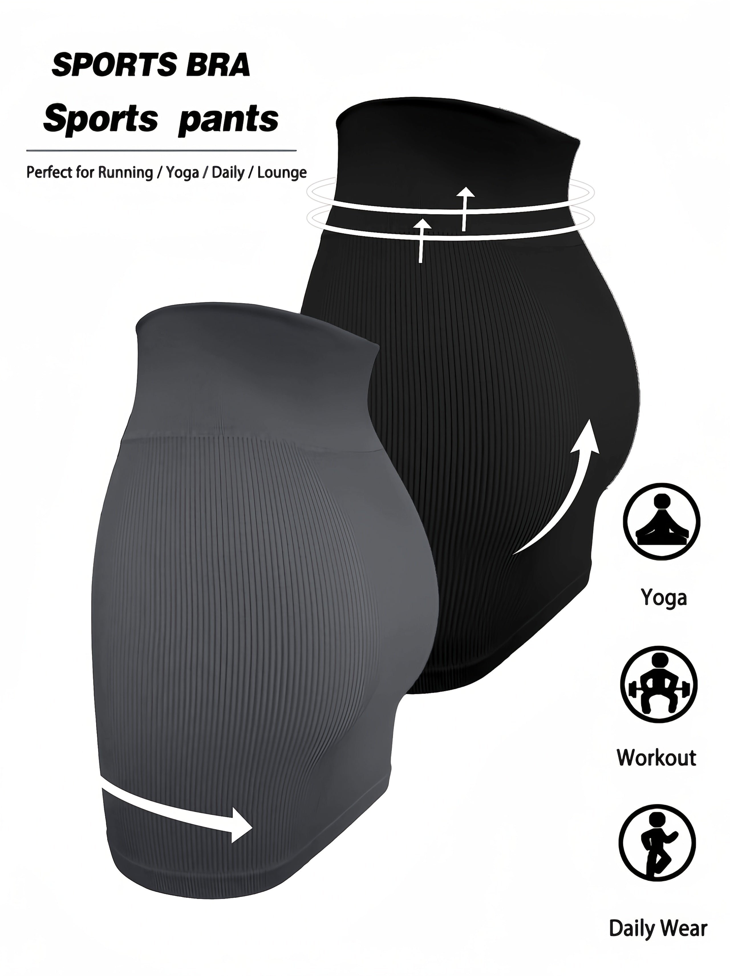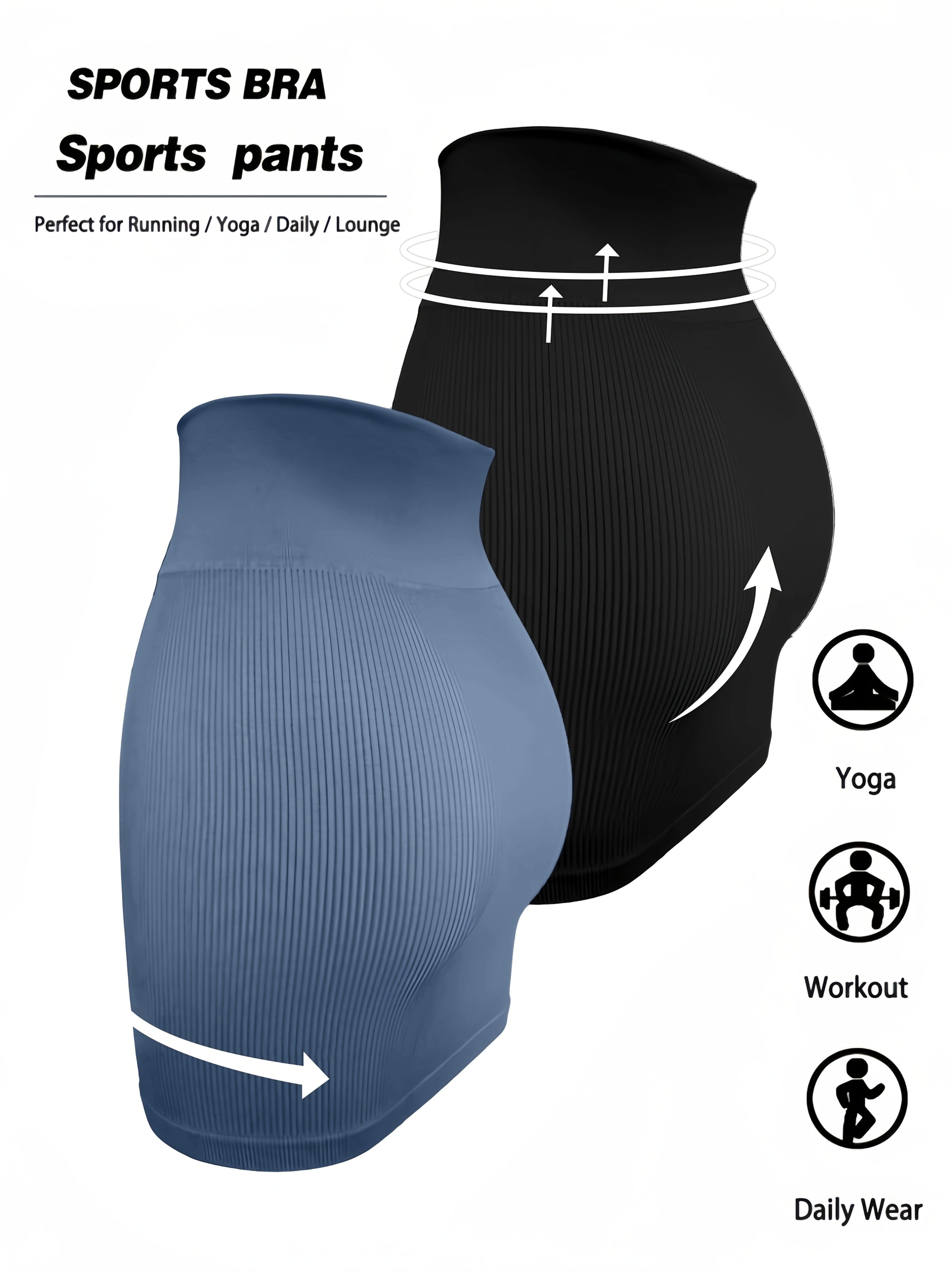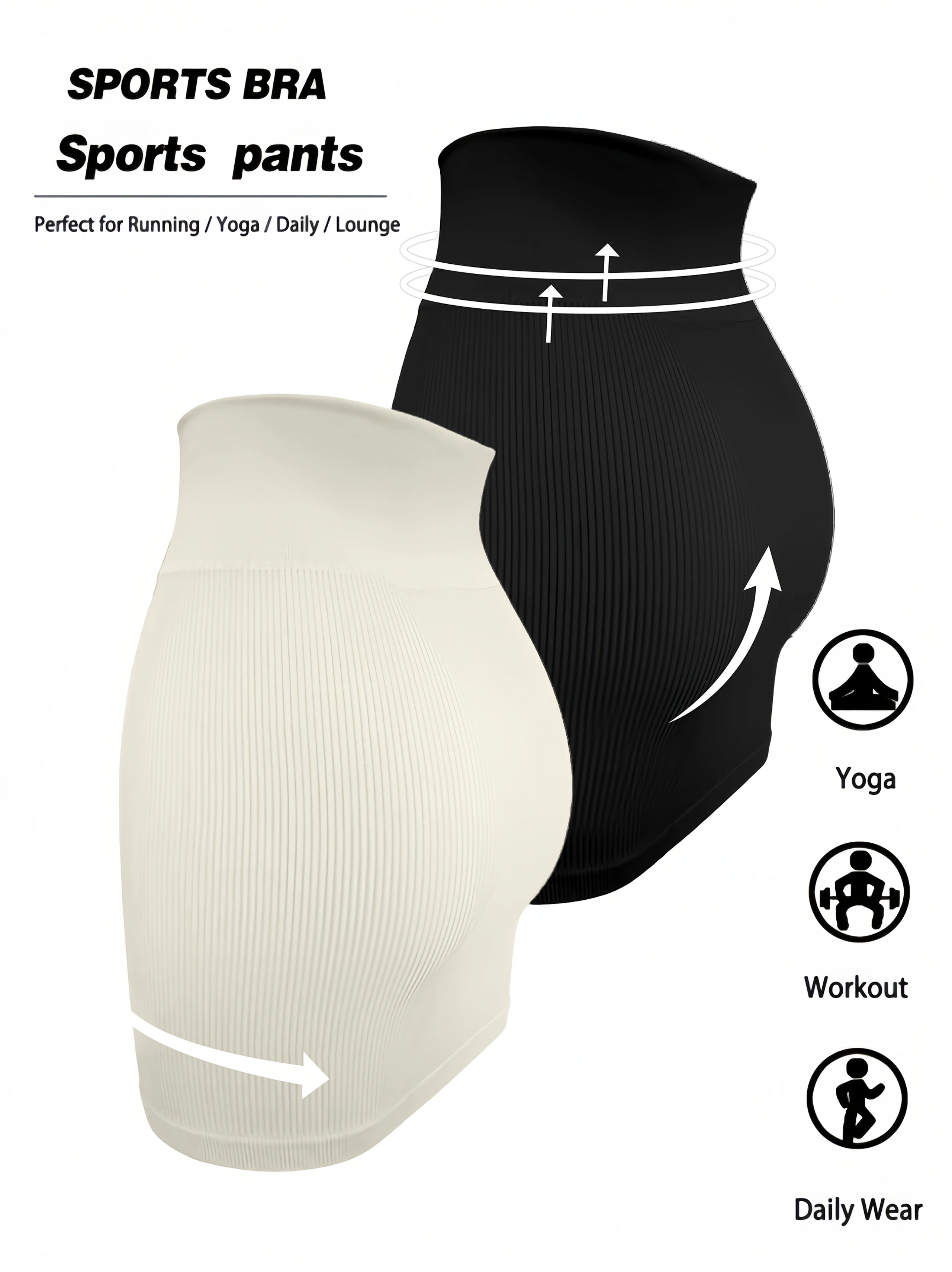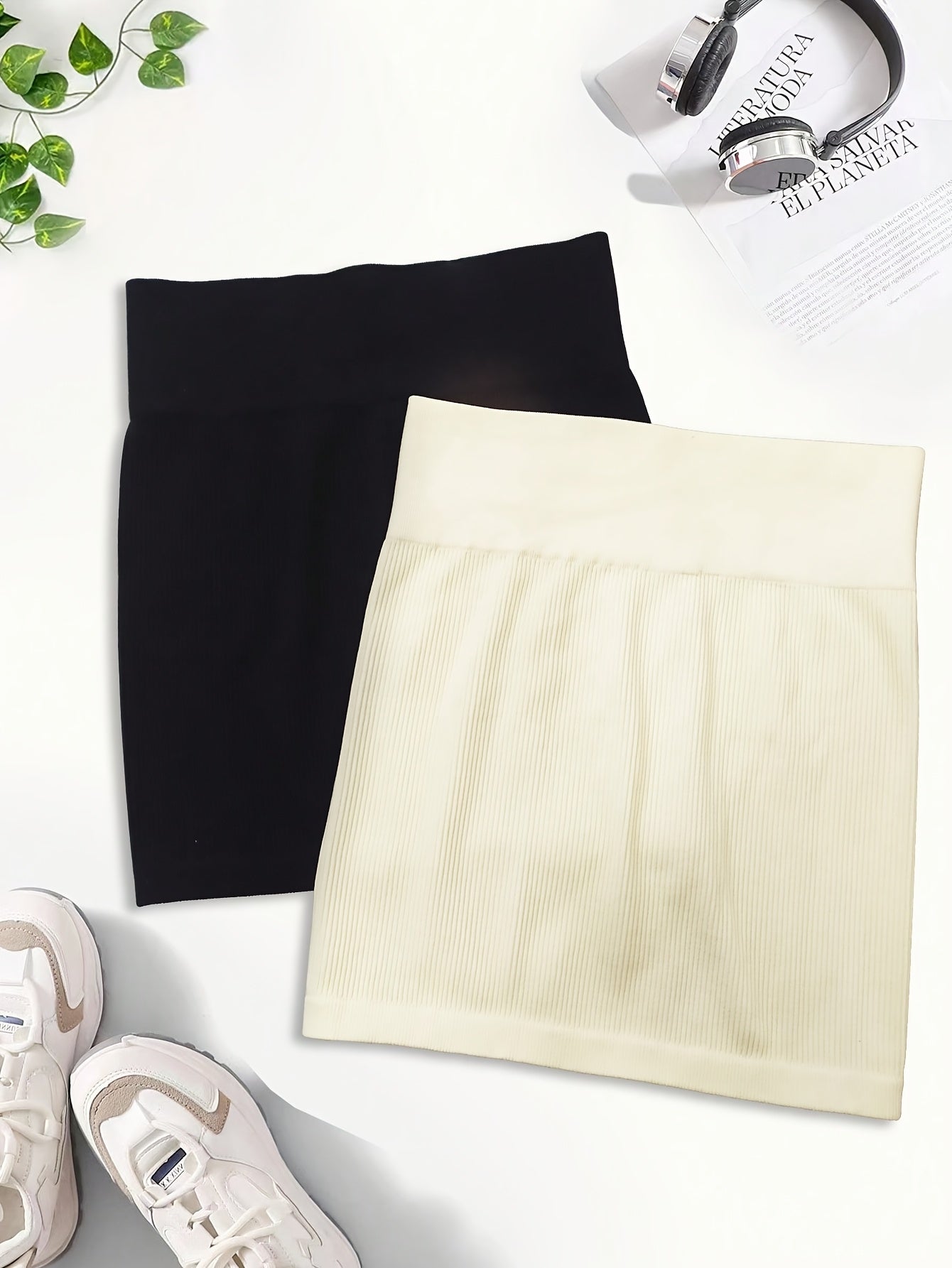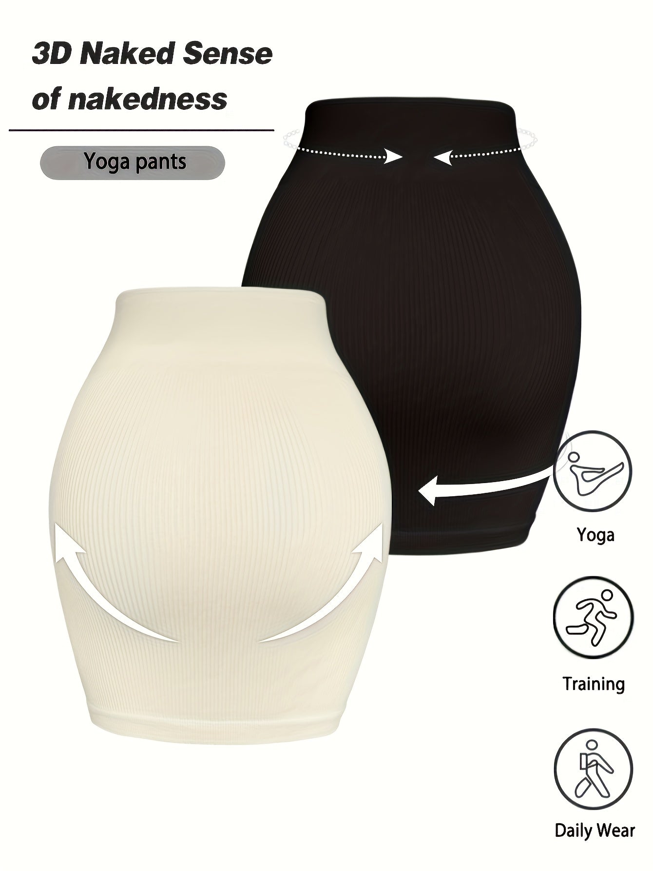 A Set of Two Women'S Ribbed High-Elastic Seamless High-Waisted Versatile Bodycon Sports Skirts, Suitable for Yoga, Running, Fitness, Casual Wear, Street Style, And Studio Use.