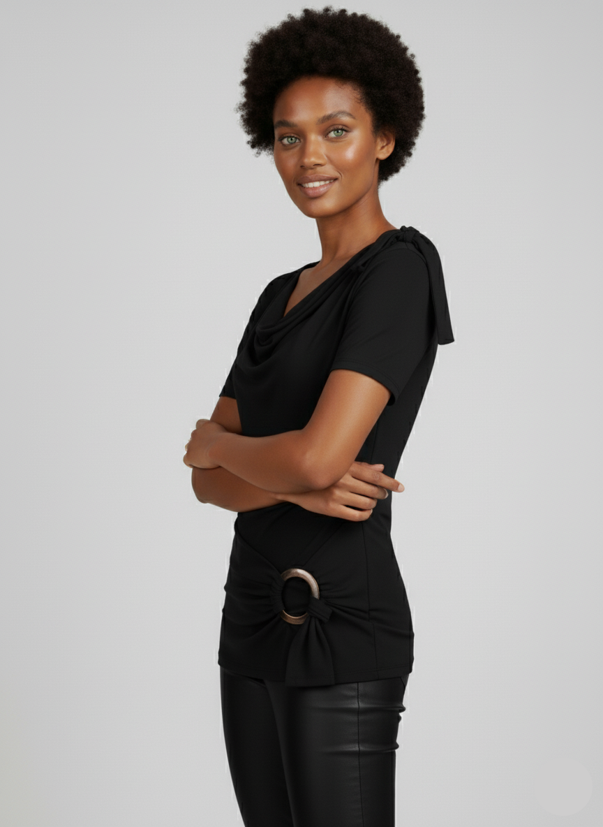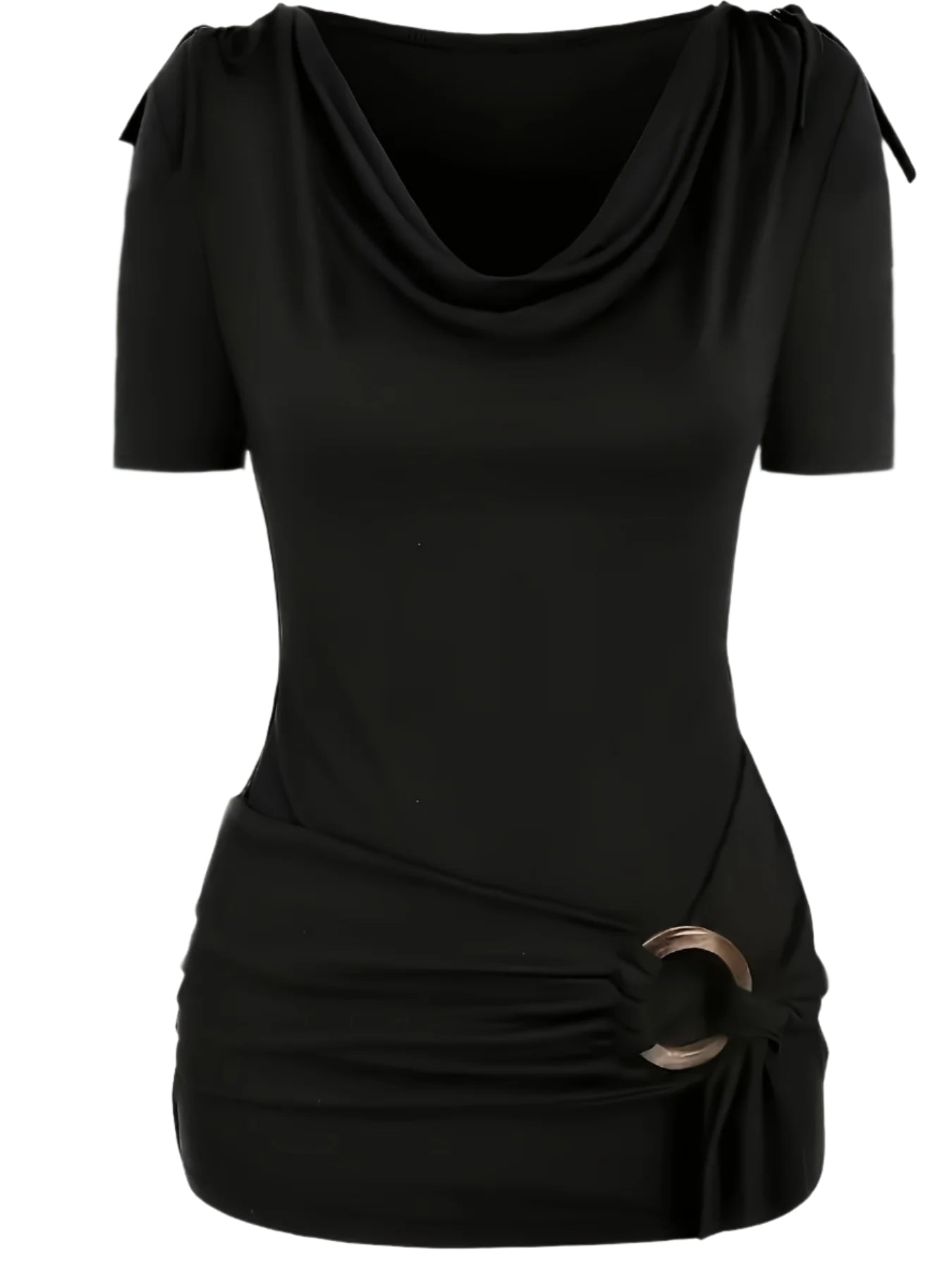 Chic Cowl Neck Black Tie-Waist Summer Top