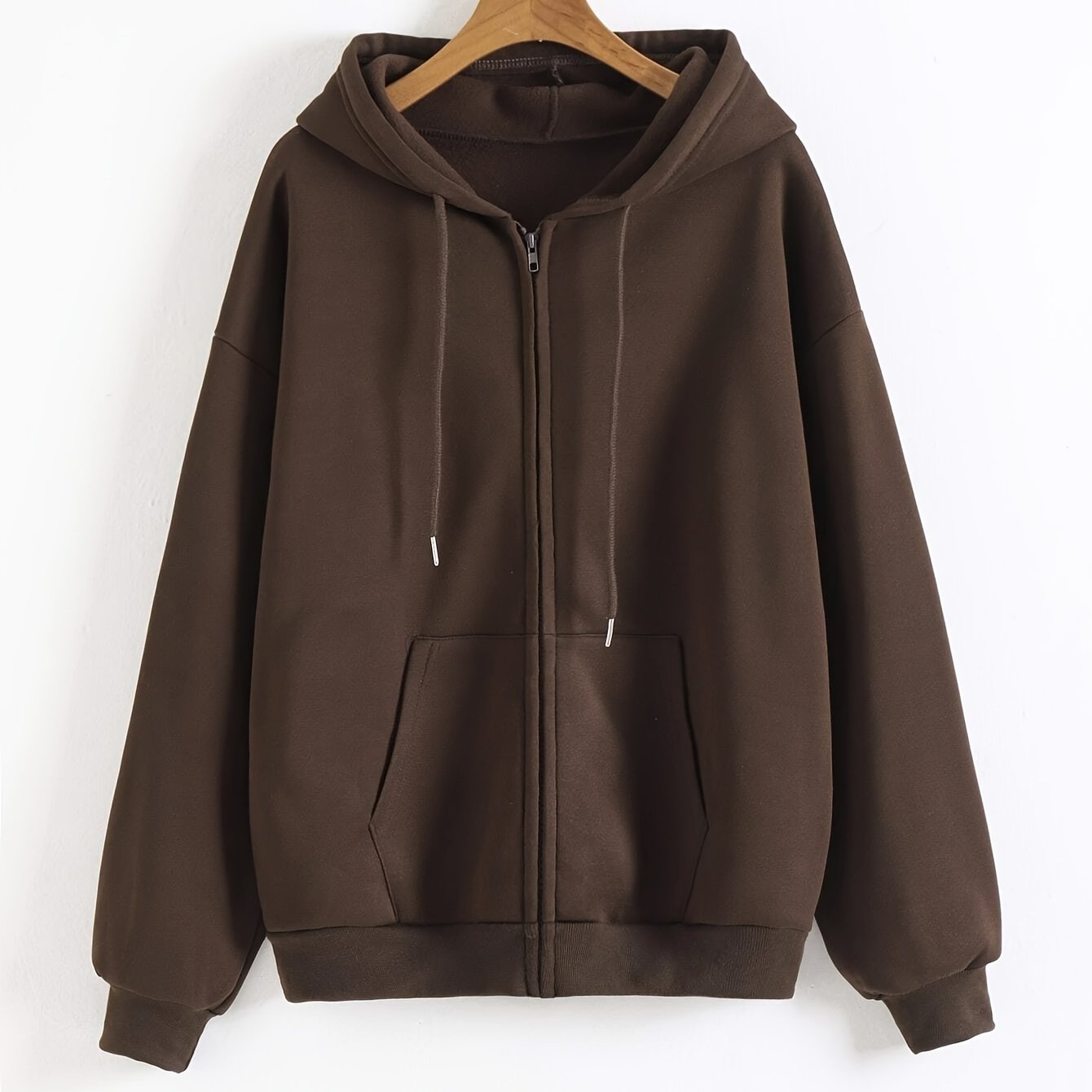Cozy Plush Lined Sweatshirt - Active Hoodies for Women with Full Zipper, Long Sleeve, and Solid Color Design - Perfect for Fall and Winter Outdoor Activities