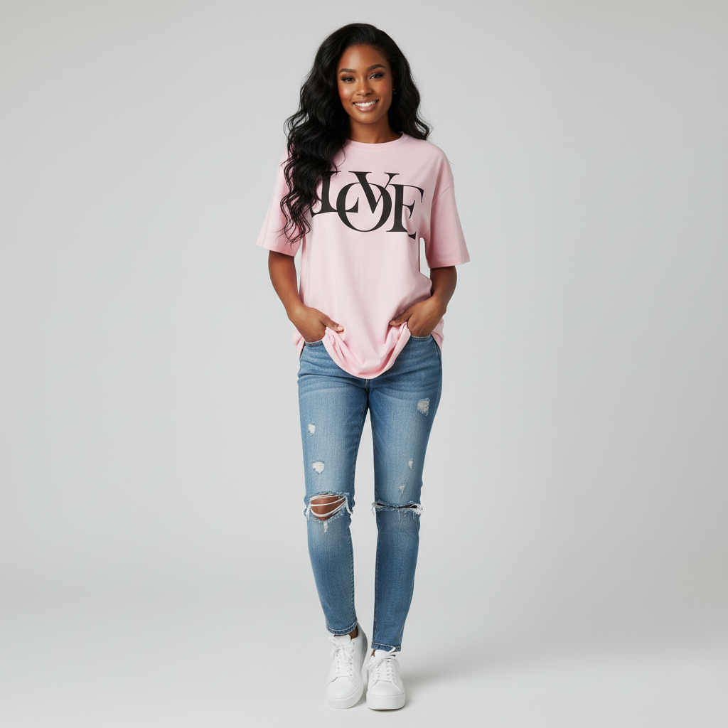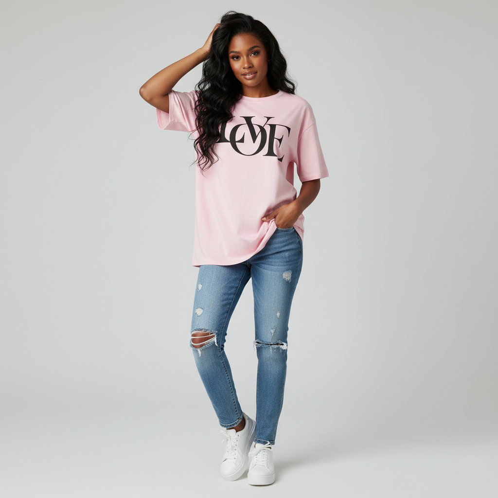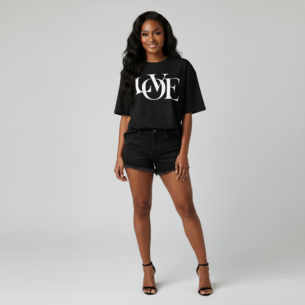 Womens Oversized 'Love' design Short Sleeves T Shirt