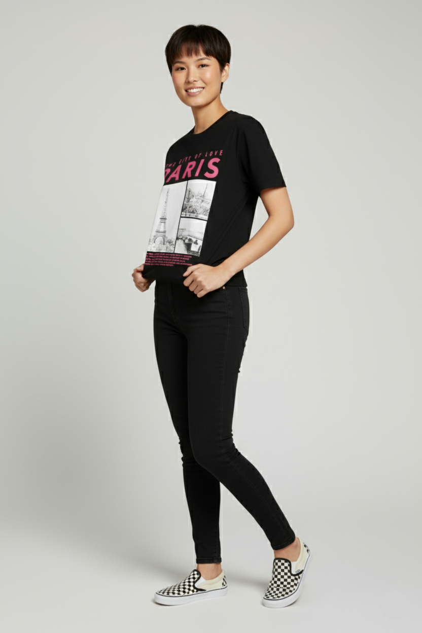 Ladies Oversized Paris Slogan Short Sleeves T Shirt Top