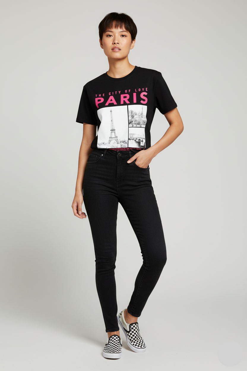 Ladies Oversized Paris Slogan Short Sleeves T Shirt Top is the ultimate cool top. Made with lightweight, high-quality fabric and presenting trendy print design, this shirt embodies comfort and style. It comes in both white and black colours and is a perfect top for those who want to look good and feel comfortable.