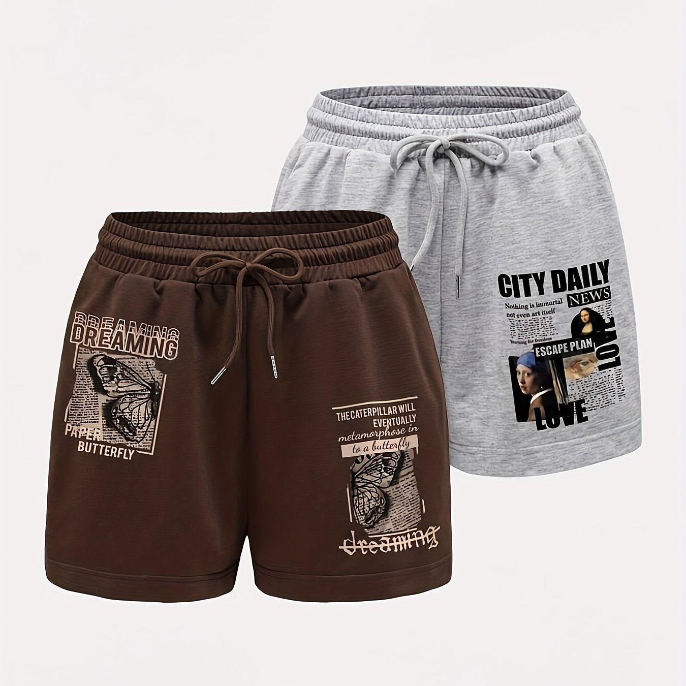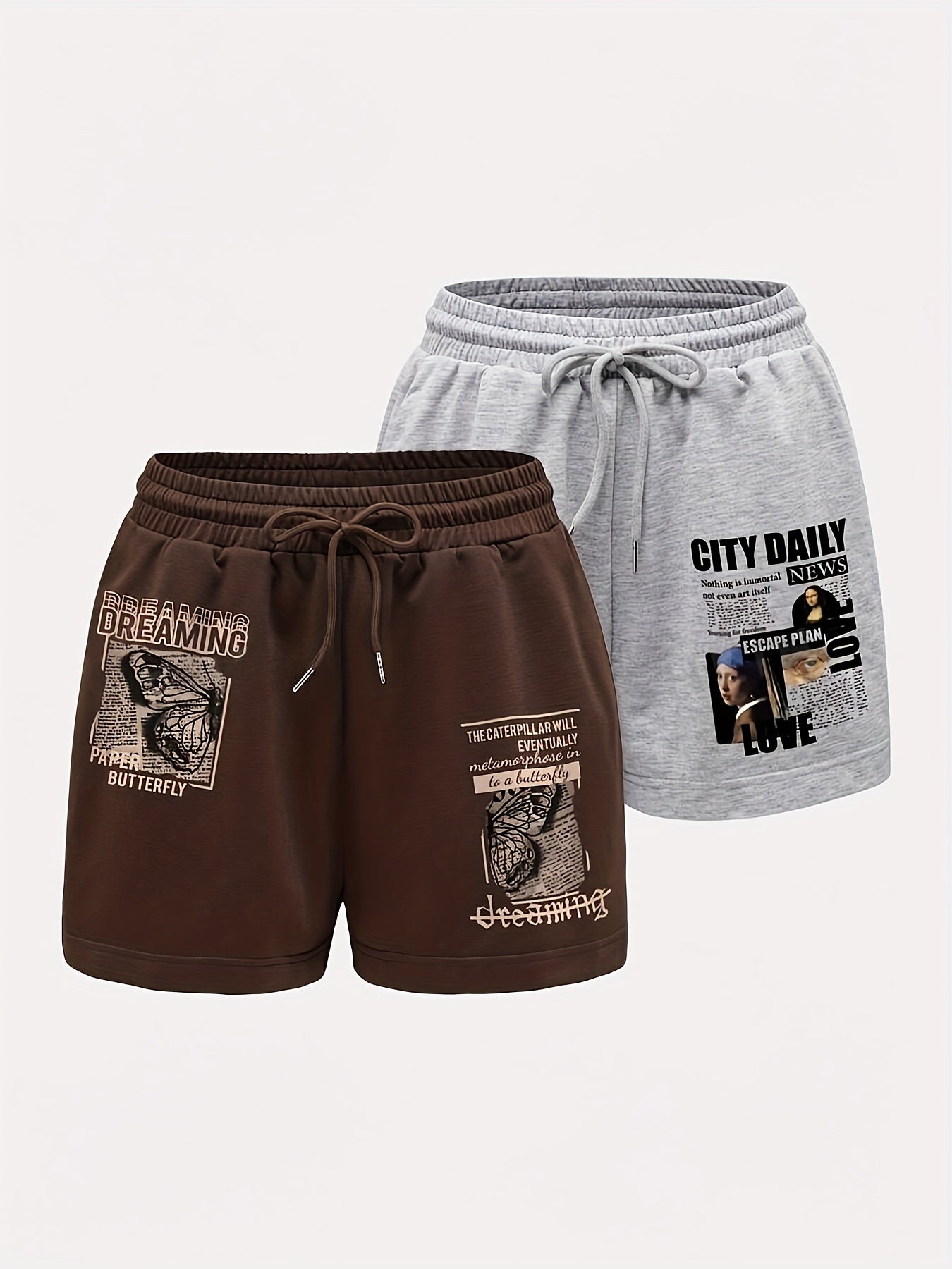 Letter Print Two-Piece Set with Drawstring Shorts, Casual Shorts for Spring & Summer, Women's Clothing