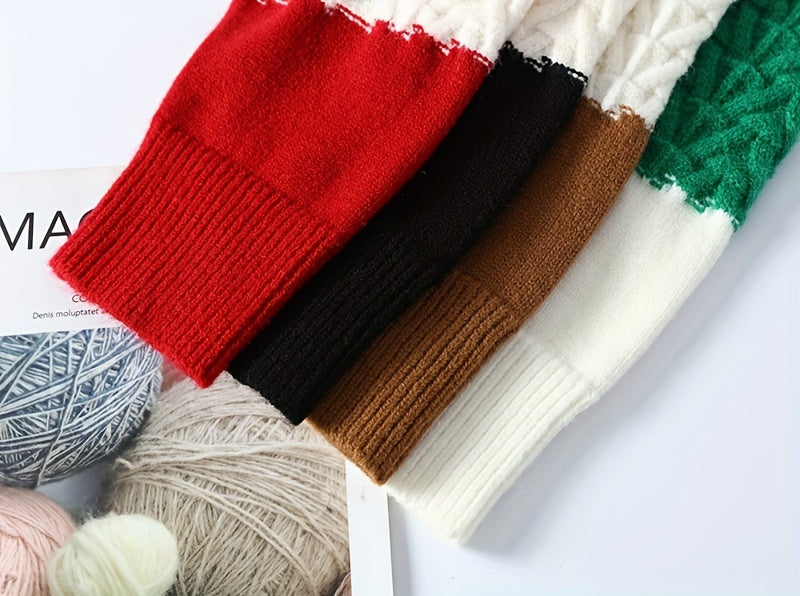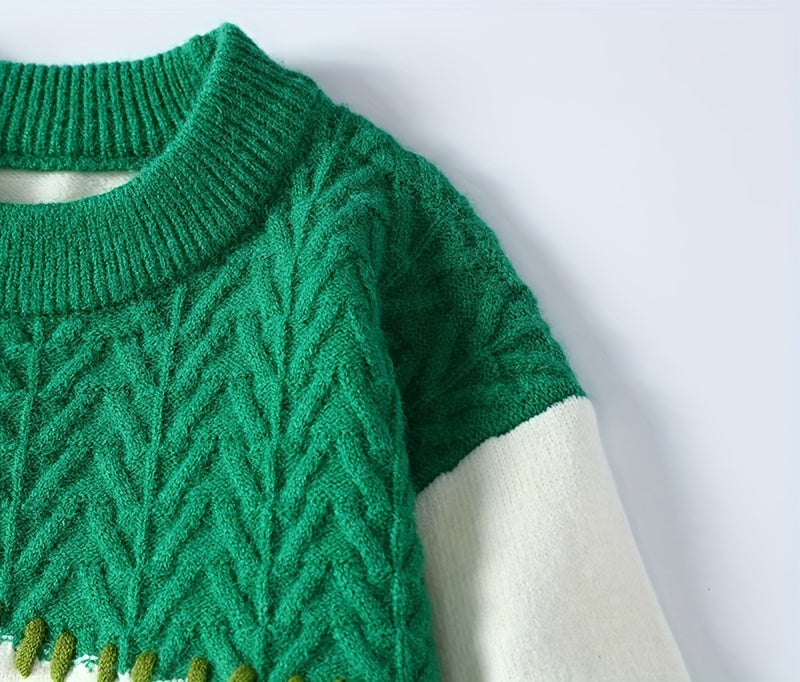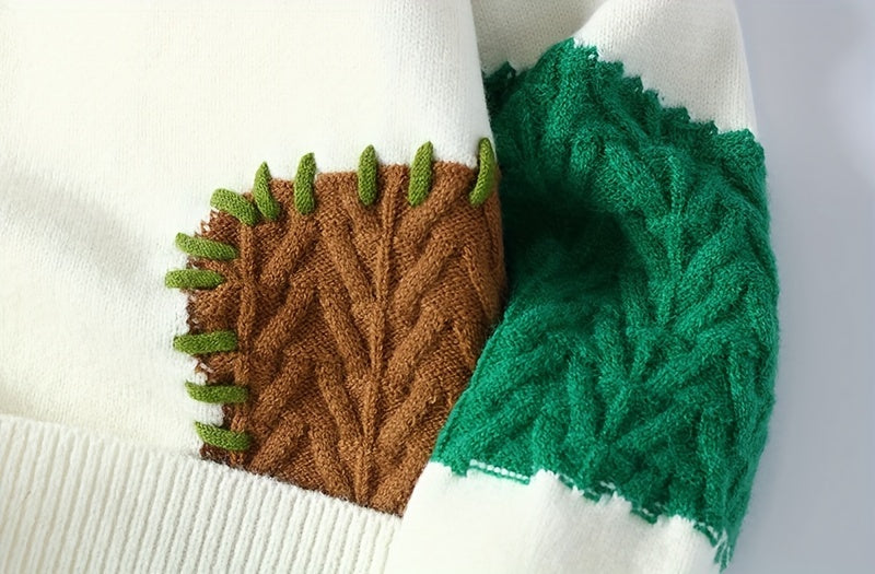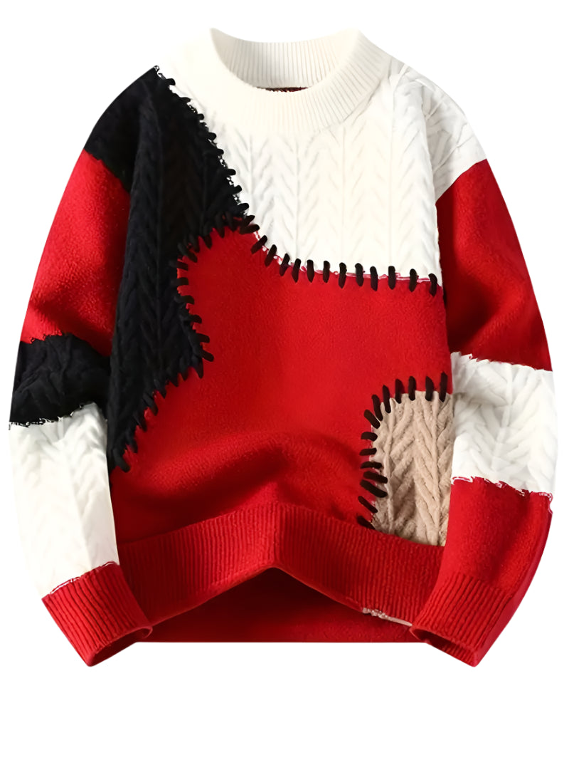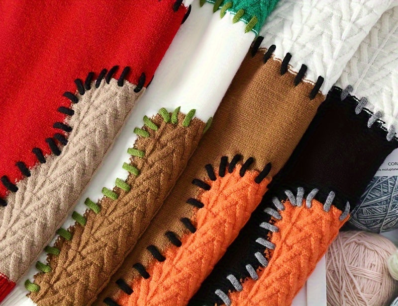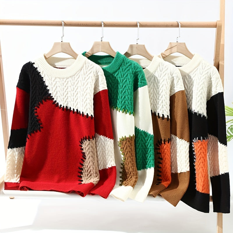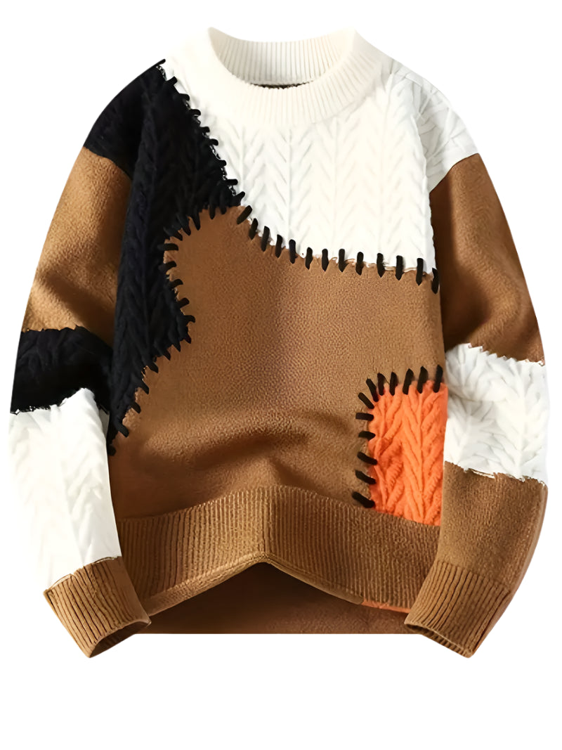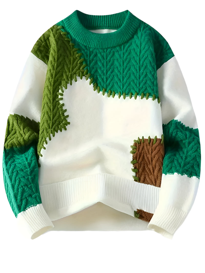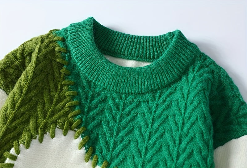 Men's Color-Block Cable Knit Sweater - Soft Warm All-Season Casual Pullover with Contrast Design, Machine Washable Regular Fit Round Neck Long Sleeve, Knitted Sweater, Durable Comfort Wear