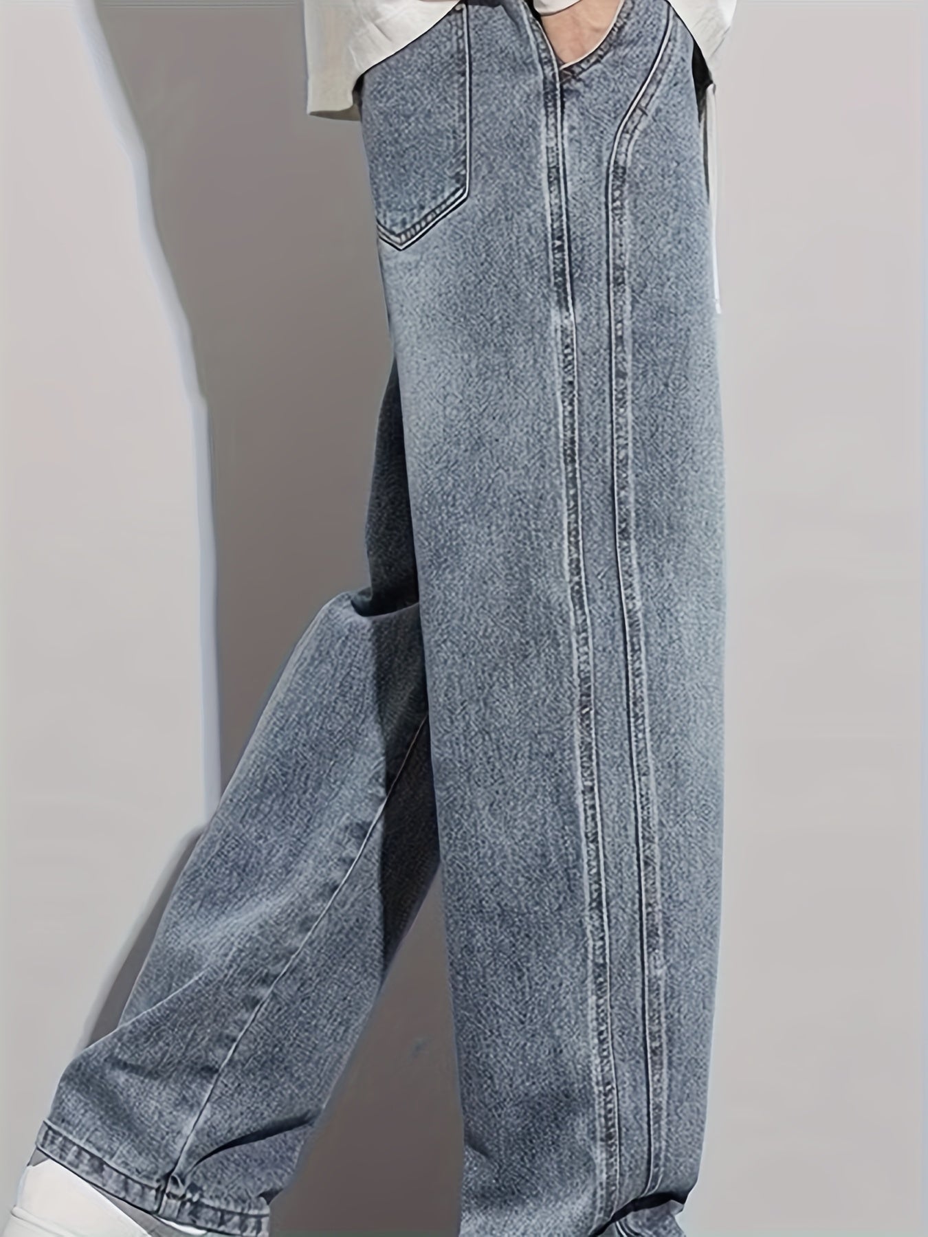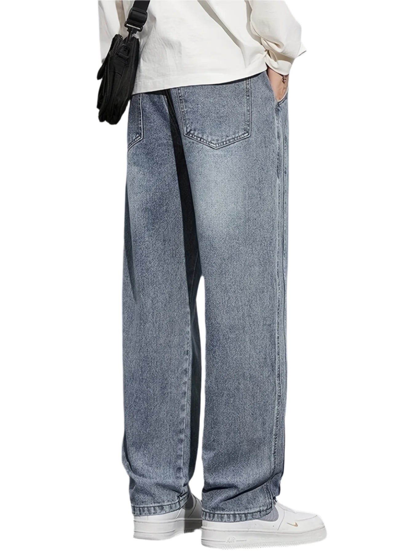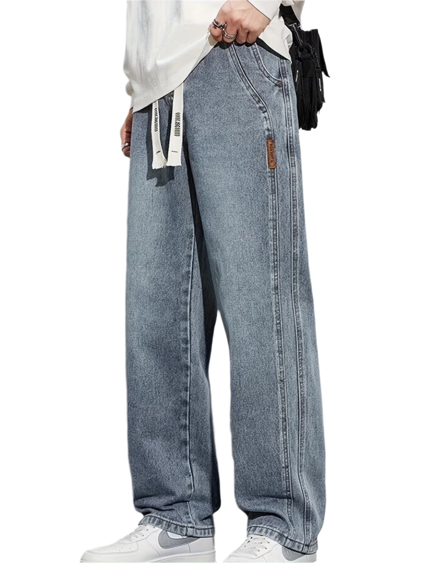 Mens Mid-Waist Long Jeans for Men in Japanese Style