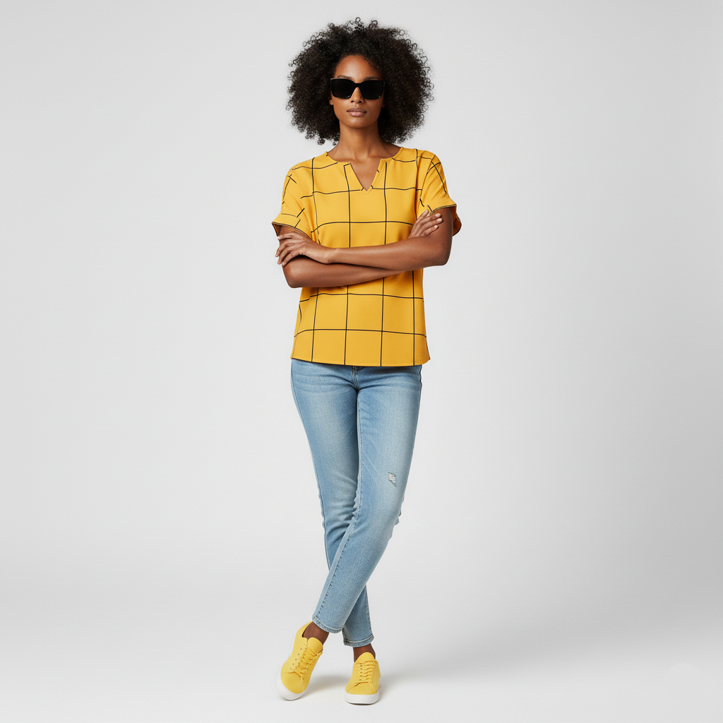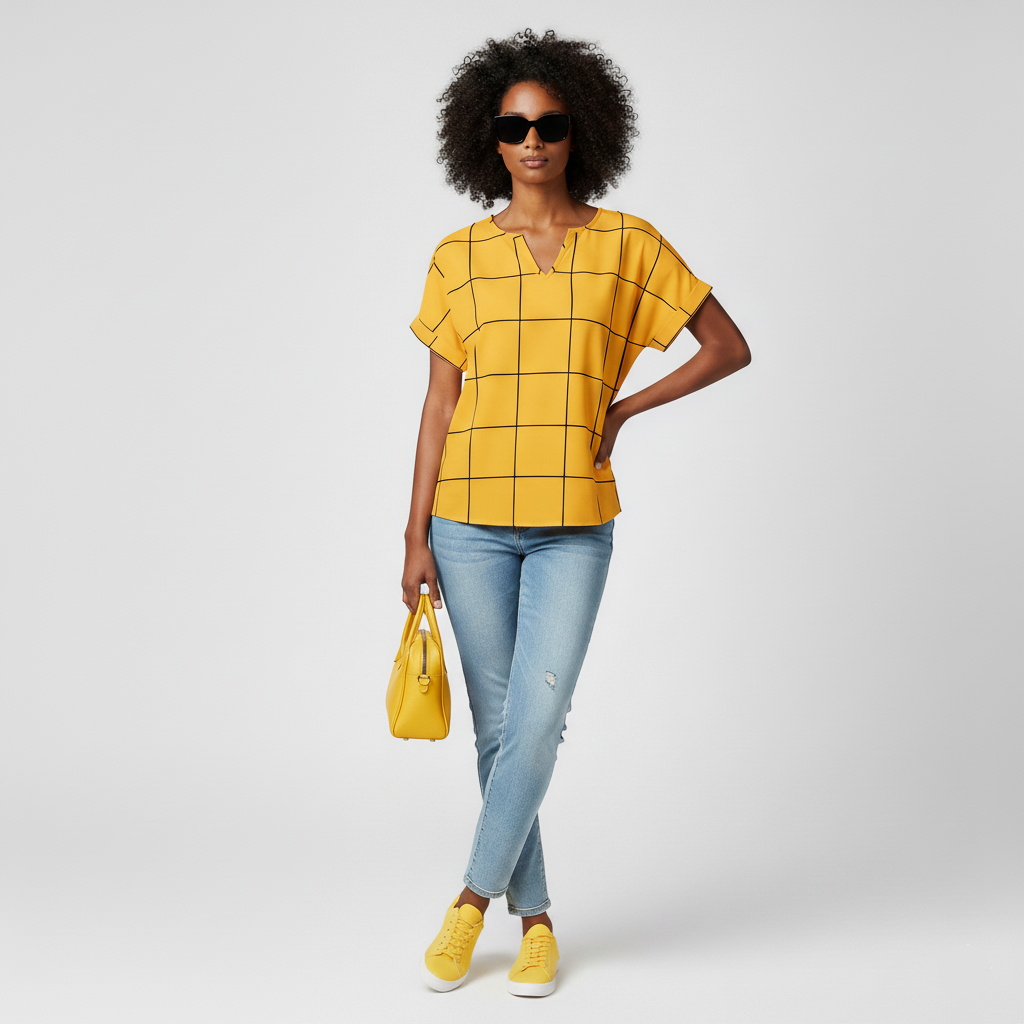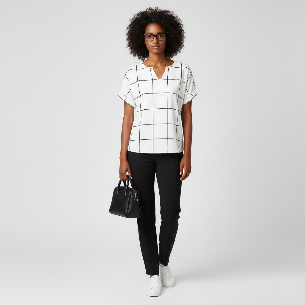 Composition: 100% Polyester Material: Polyester Length: Regular Belt: No Sleeve Length: Short Sleeve Sleeve Type: Regular Sleeve Hem Shaped: Tight Hem Pattern: Plaid Applicable People: Adult Sheer: No Fabric: Slight Stretch... Read more