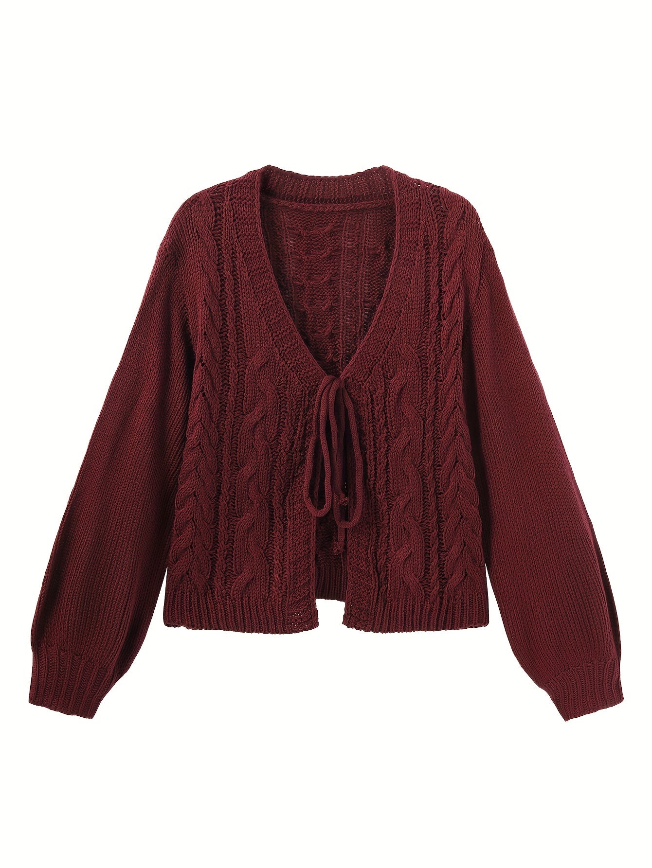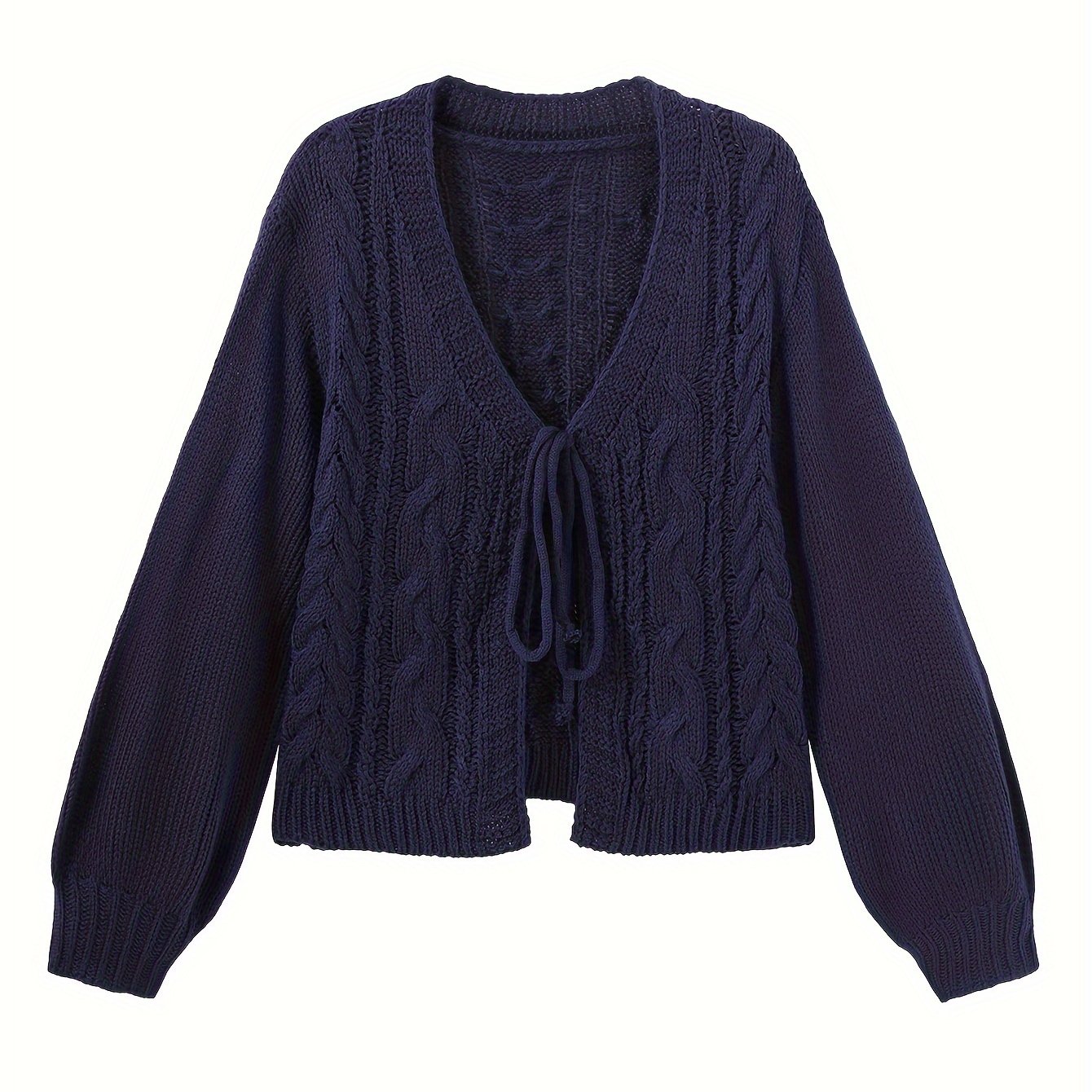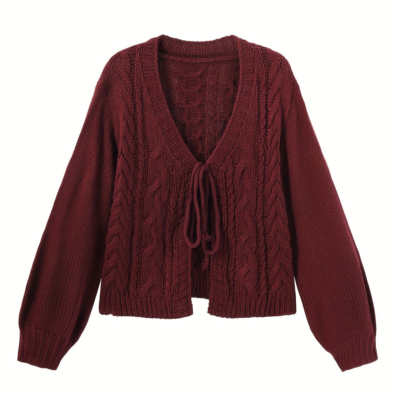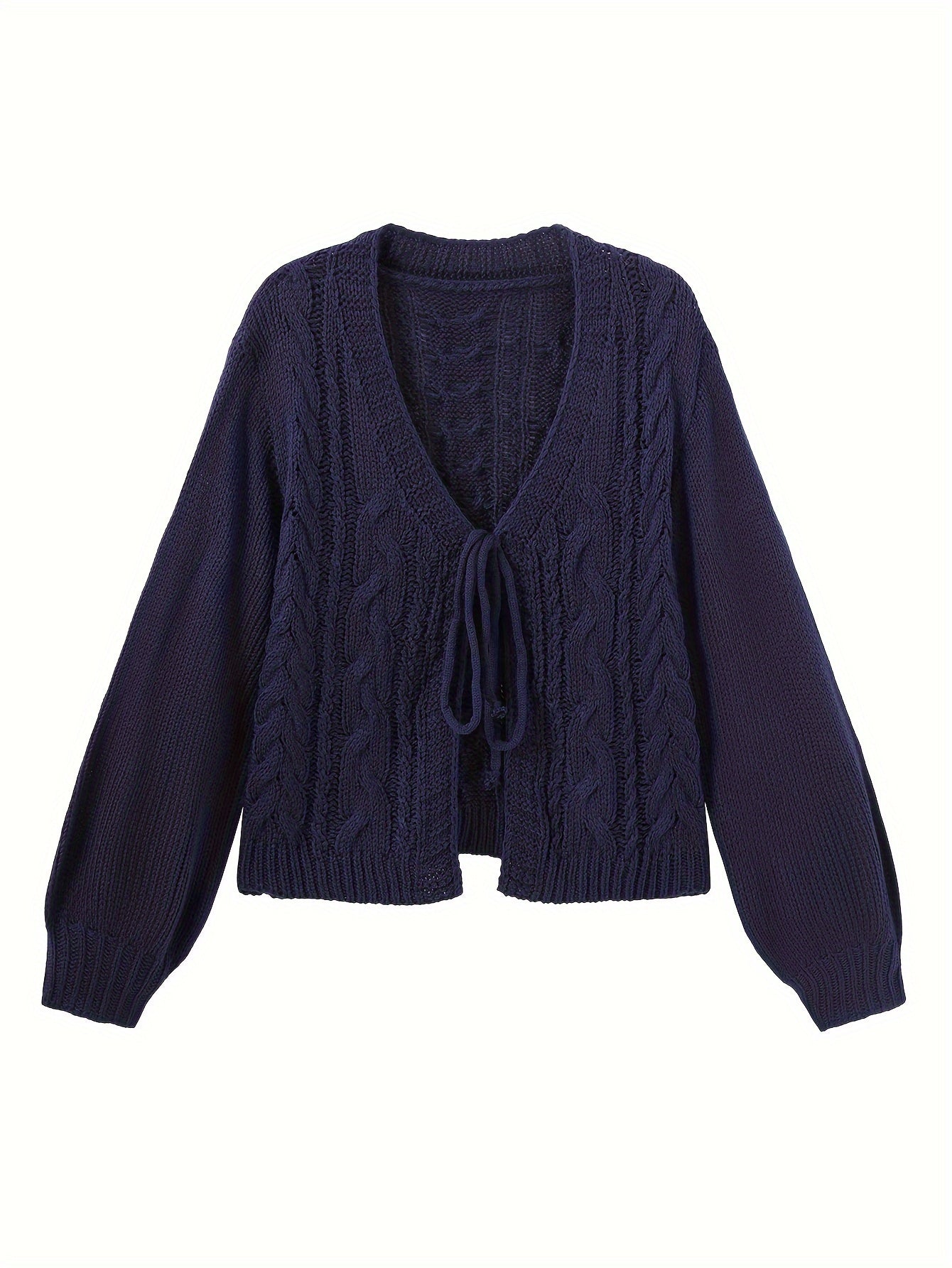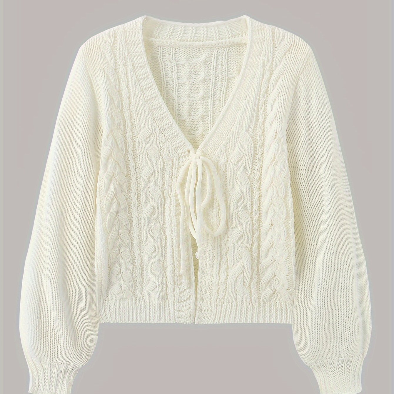 Short-Sleeved Autumn and Winter Open Cardigan with Drawstring Lantern Sleeves for Women