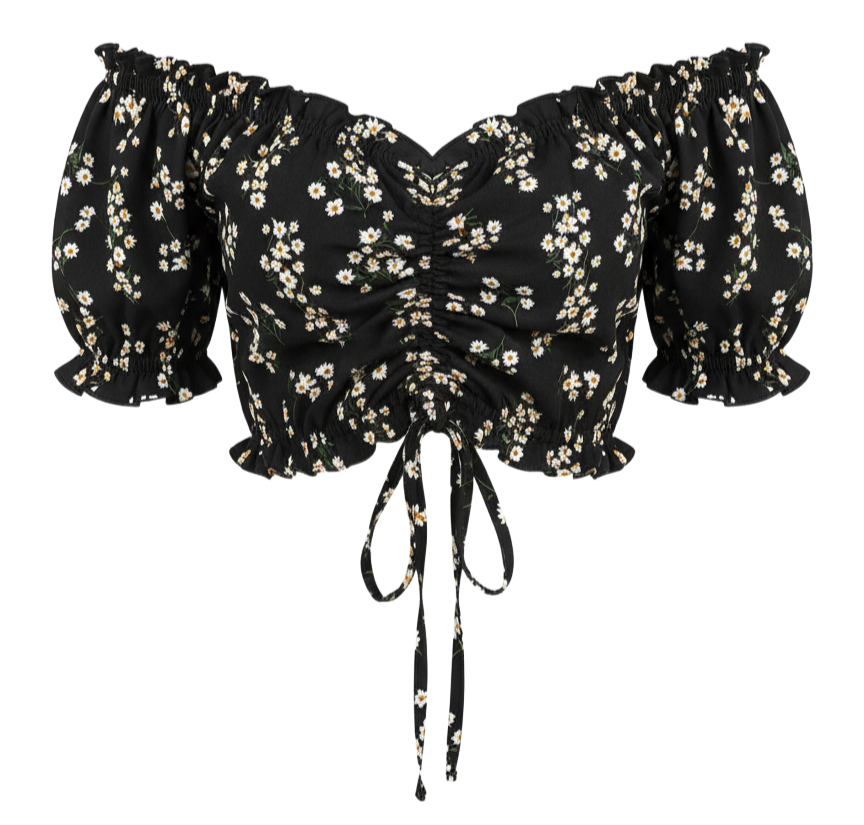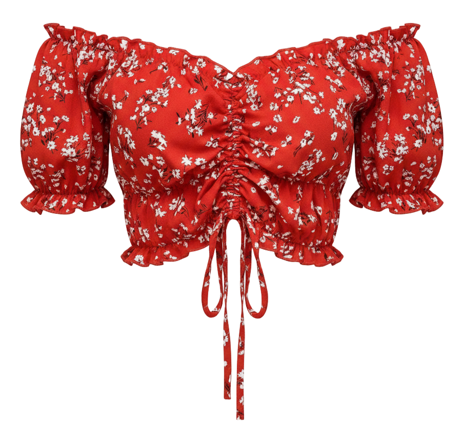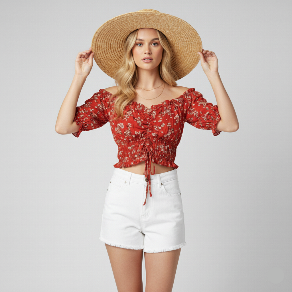 Women Vacation Style Casual Off-Shoulder Elastic Cropped Top With Floral Print