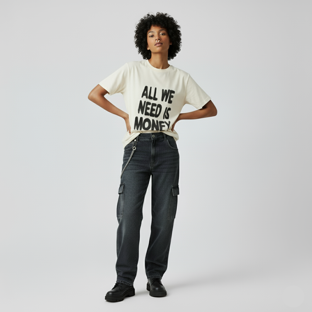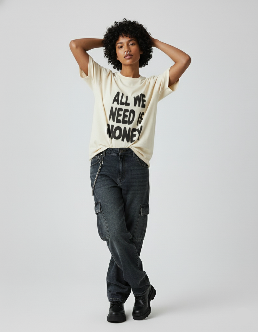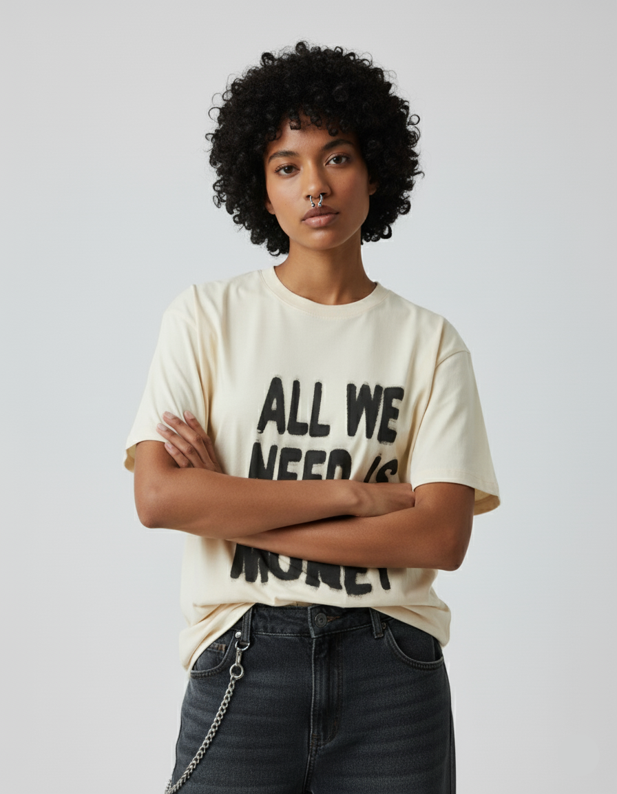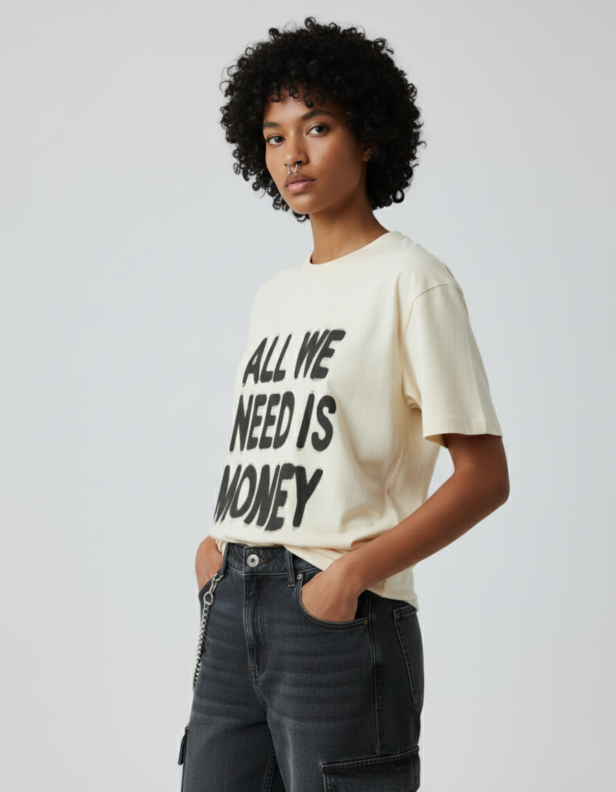 Womens Casual "All We Need Is Money" Graphic Tee - Loose Fit