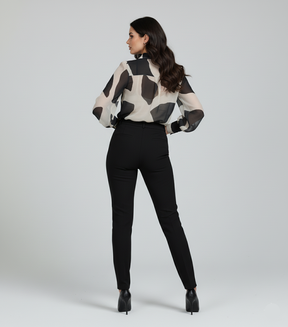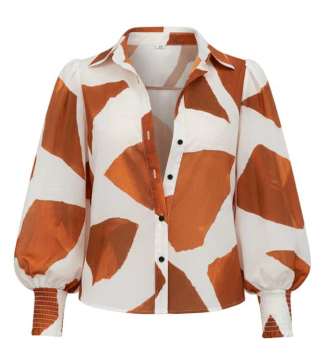 Women's Elegant Loose Geometric Print Lantern Sleeve Blouse, Spring & Summer